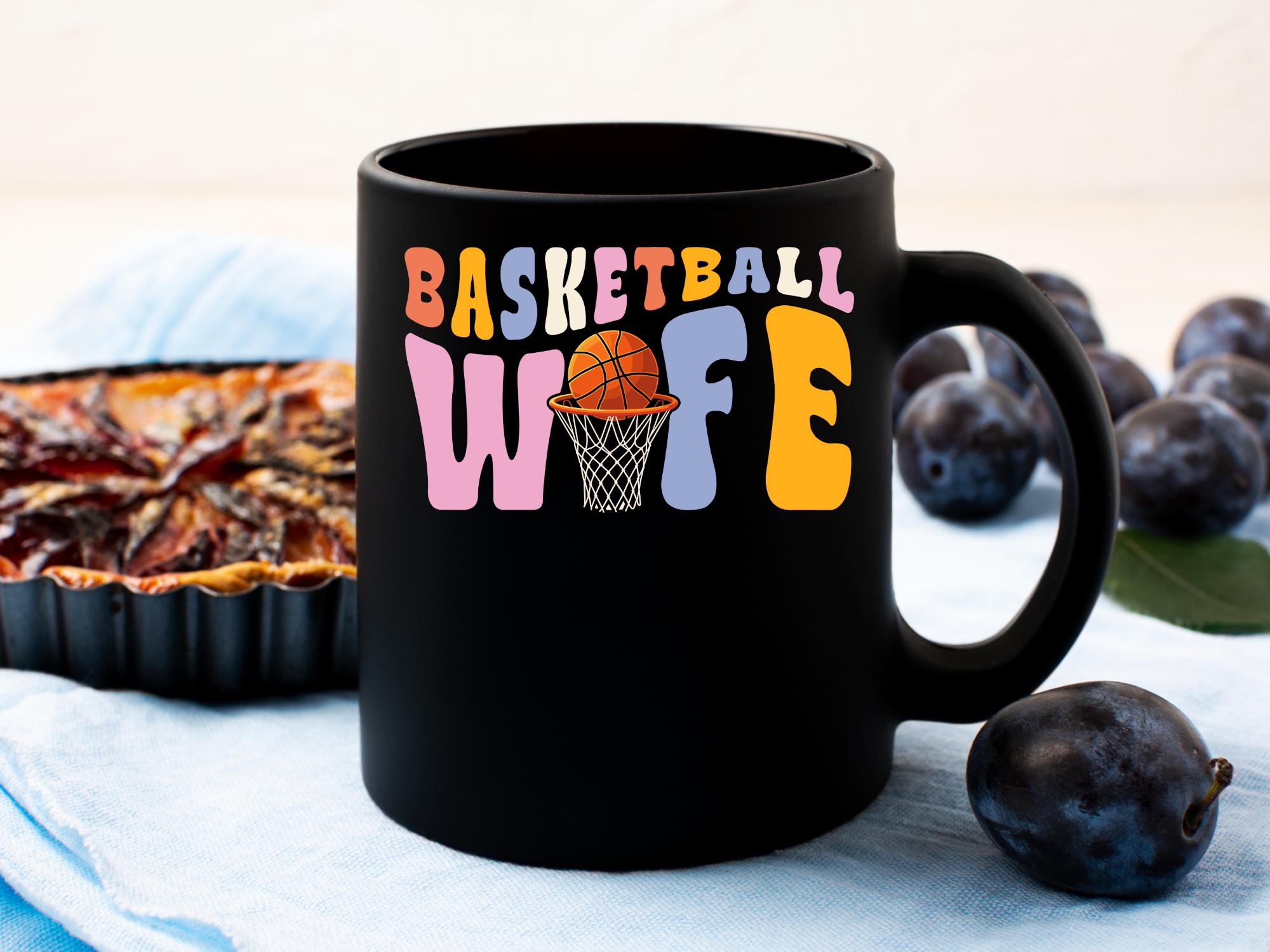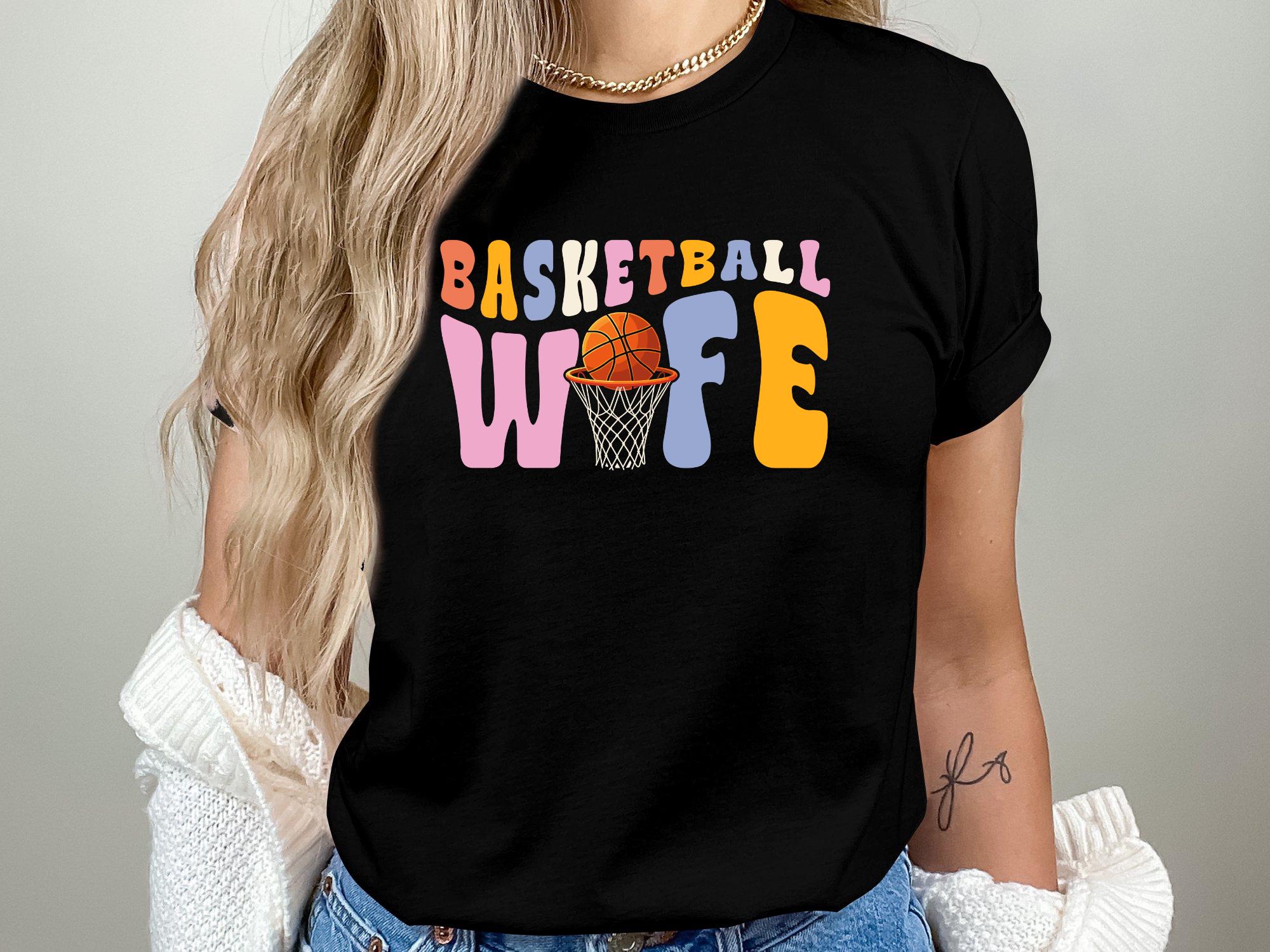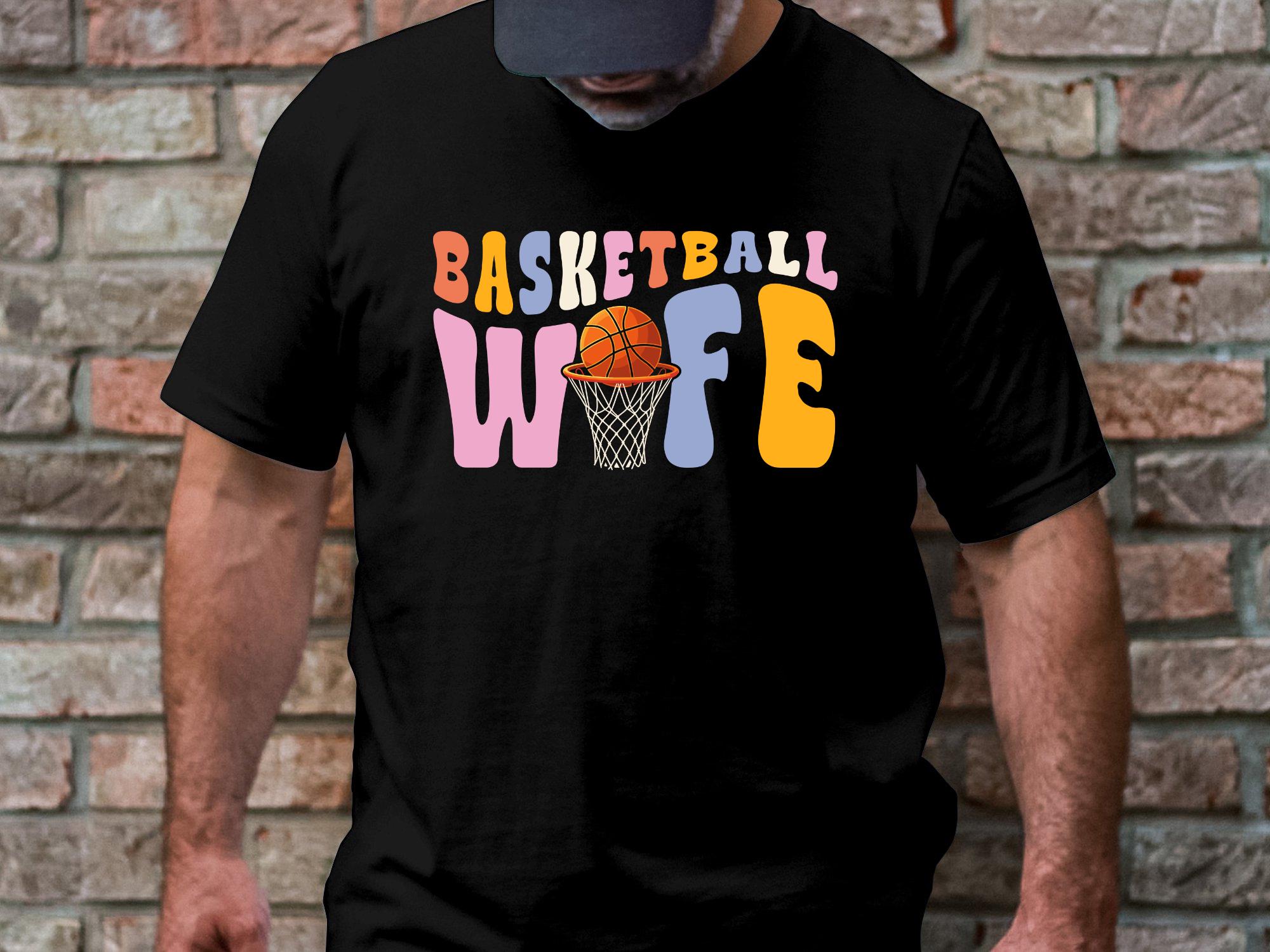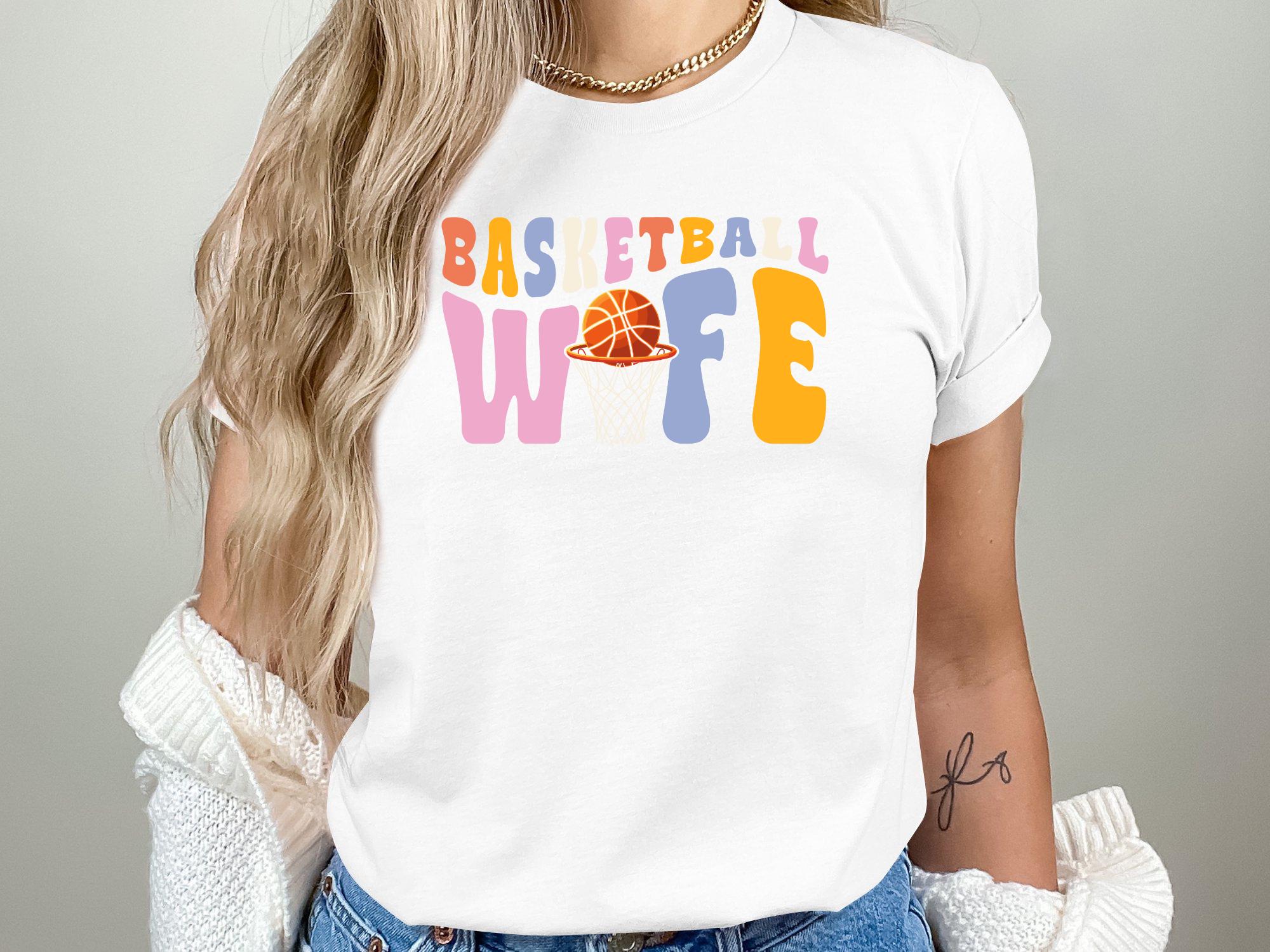 Funny “Basketball Wife” design in groovy retro pastel colors with a basketball hoop graphic. Perfect PNG for basketball wives who love humor and vintage designs — great for shirts, mugs, or tote bags.