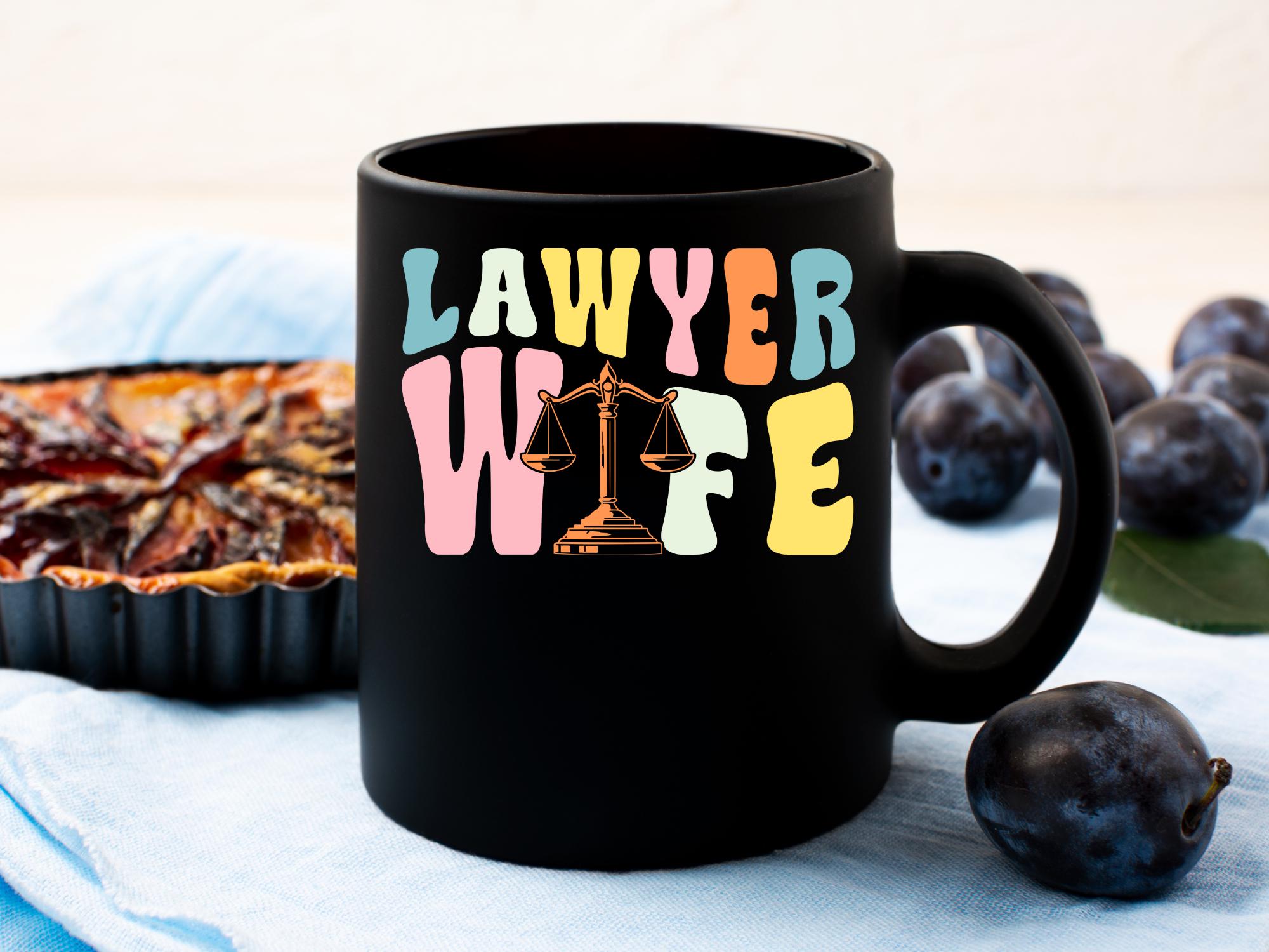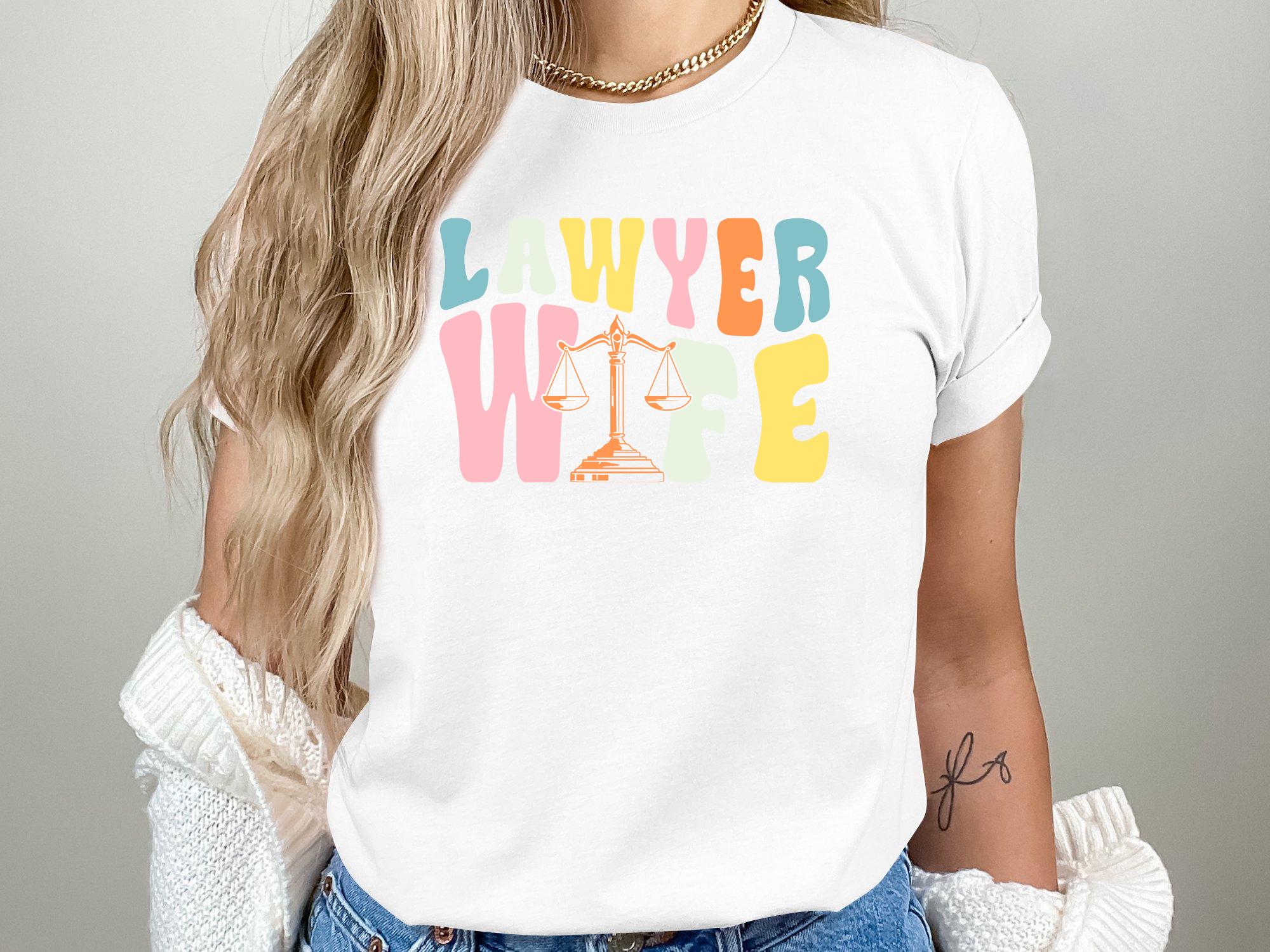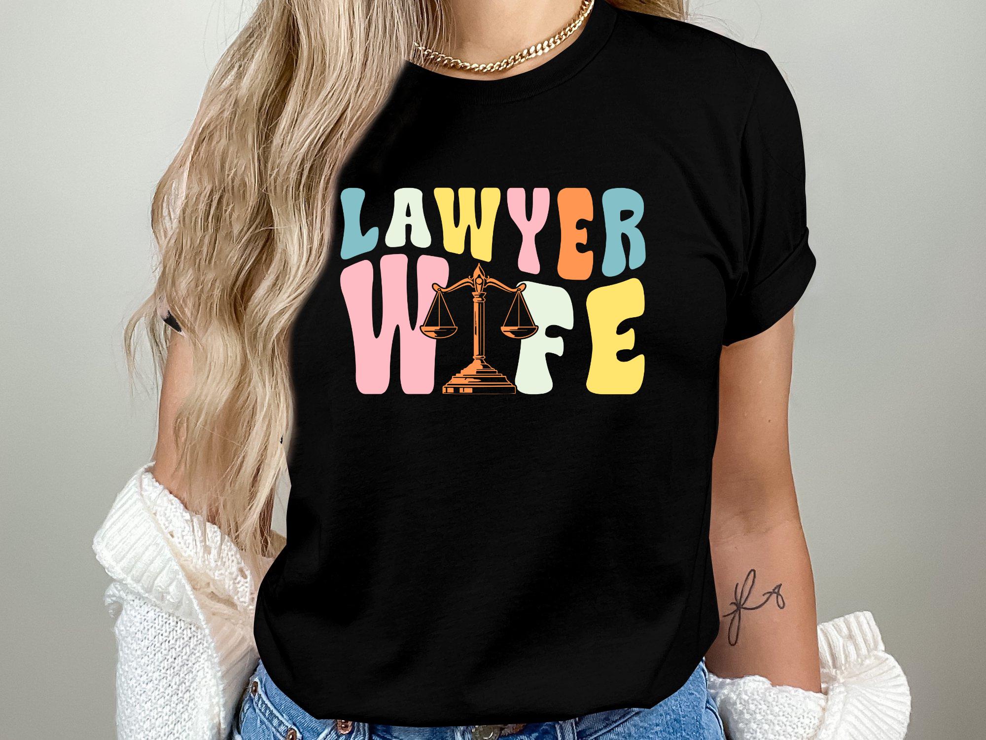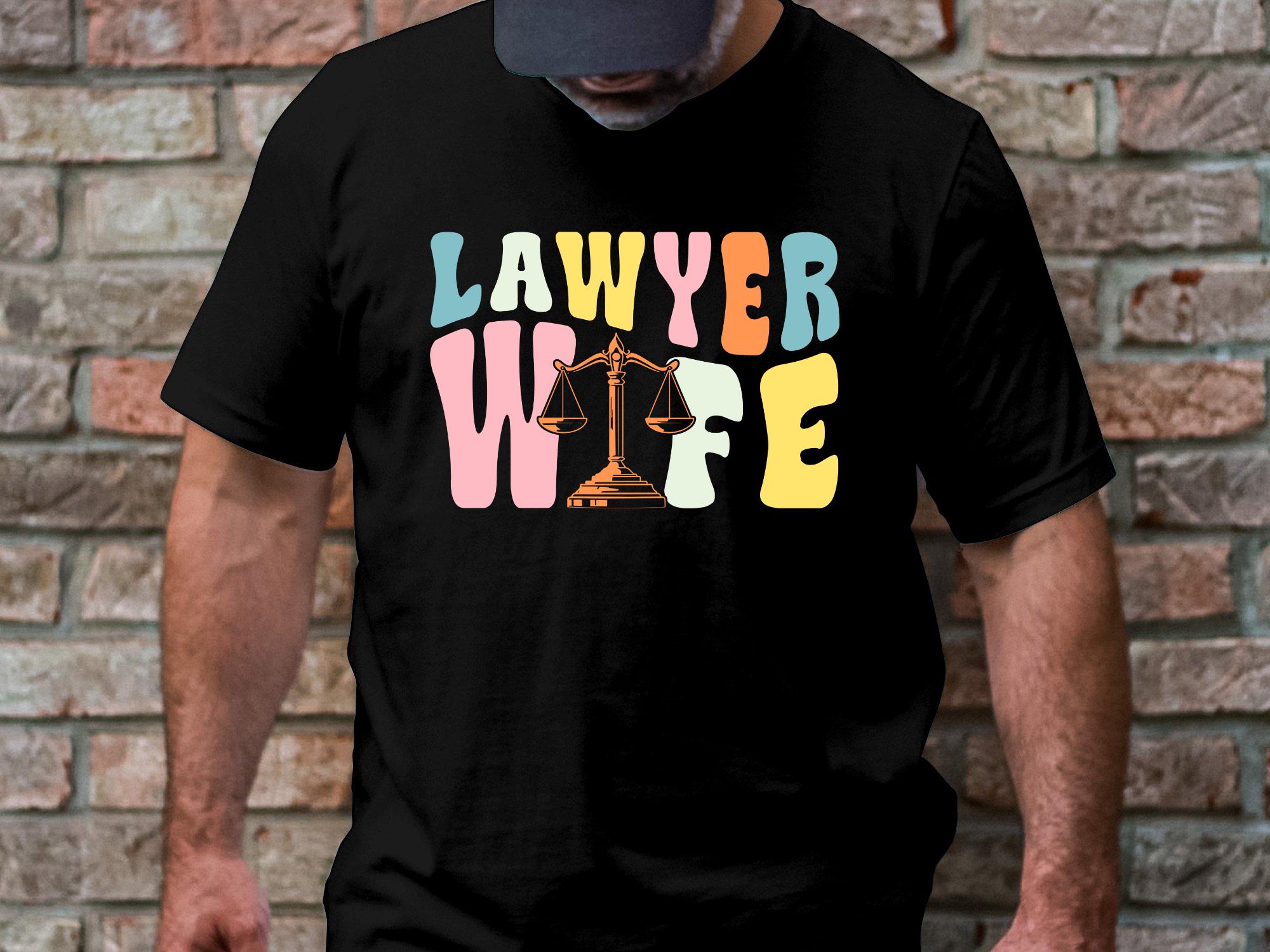 Funny “Lawyer Wife” design in groovy retro pastel style with a justice scale graphic. Perfect PNG for lawyer wives who love humor and vintage aesthetic — great for shirts, mugs, or tote bags.