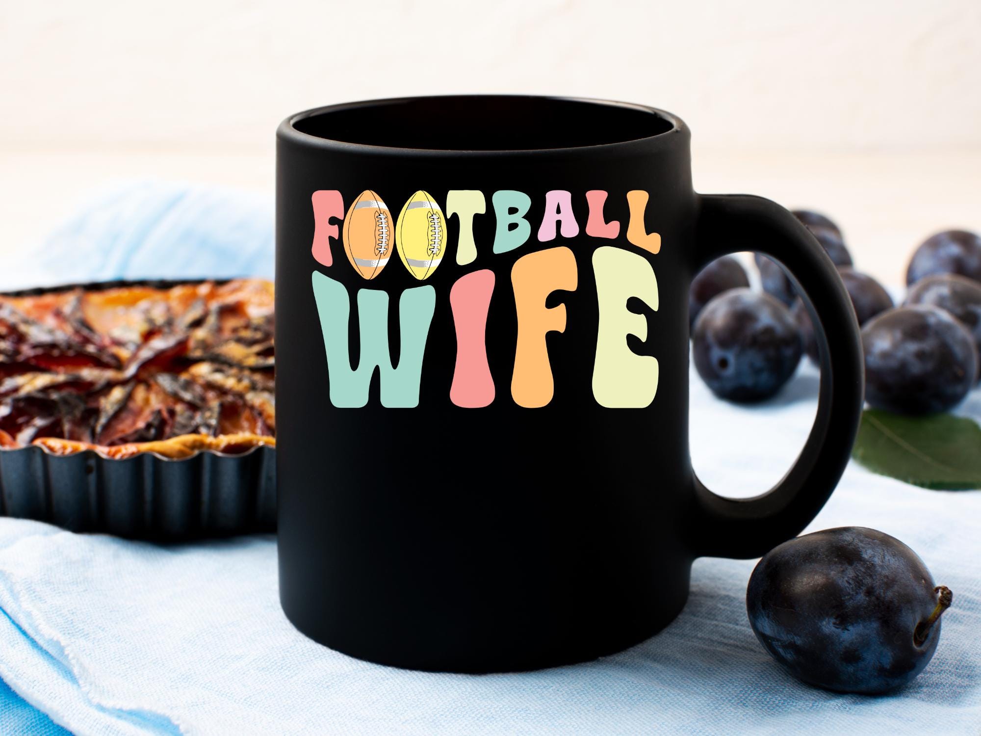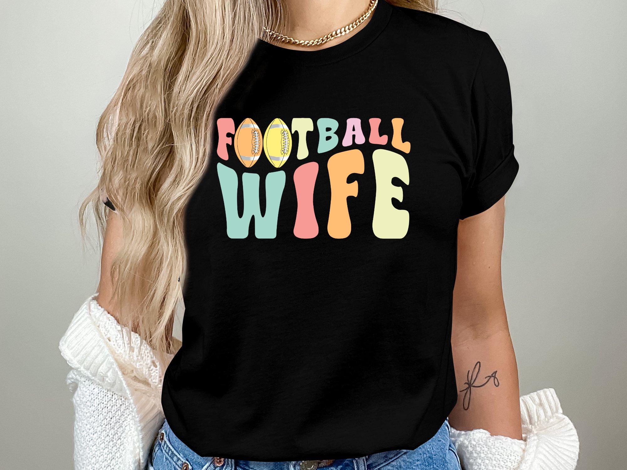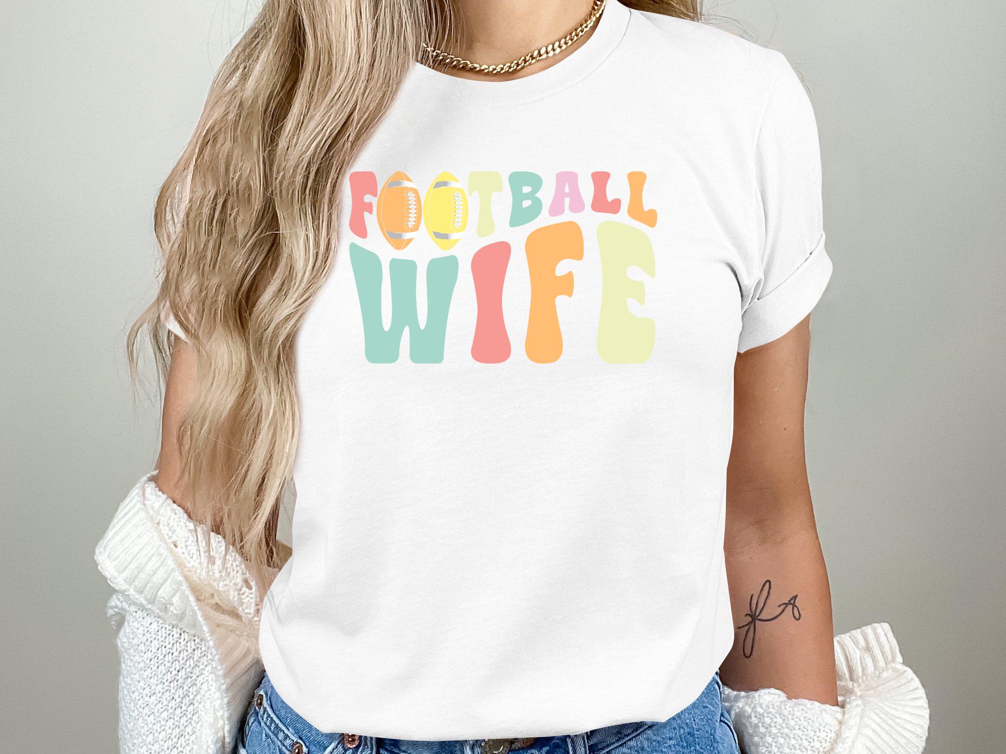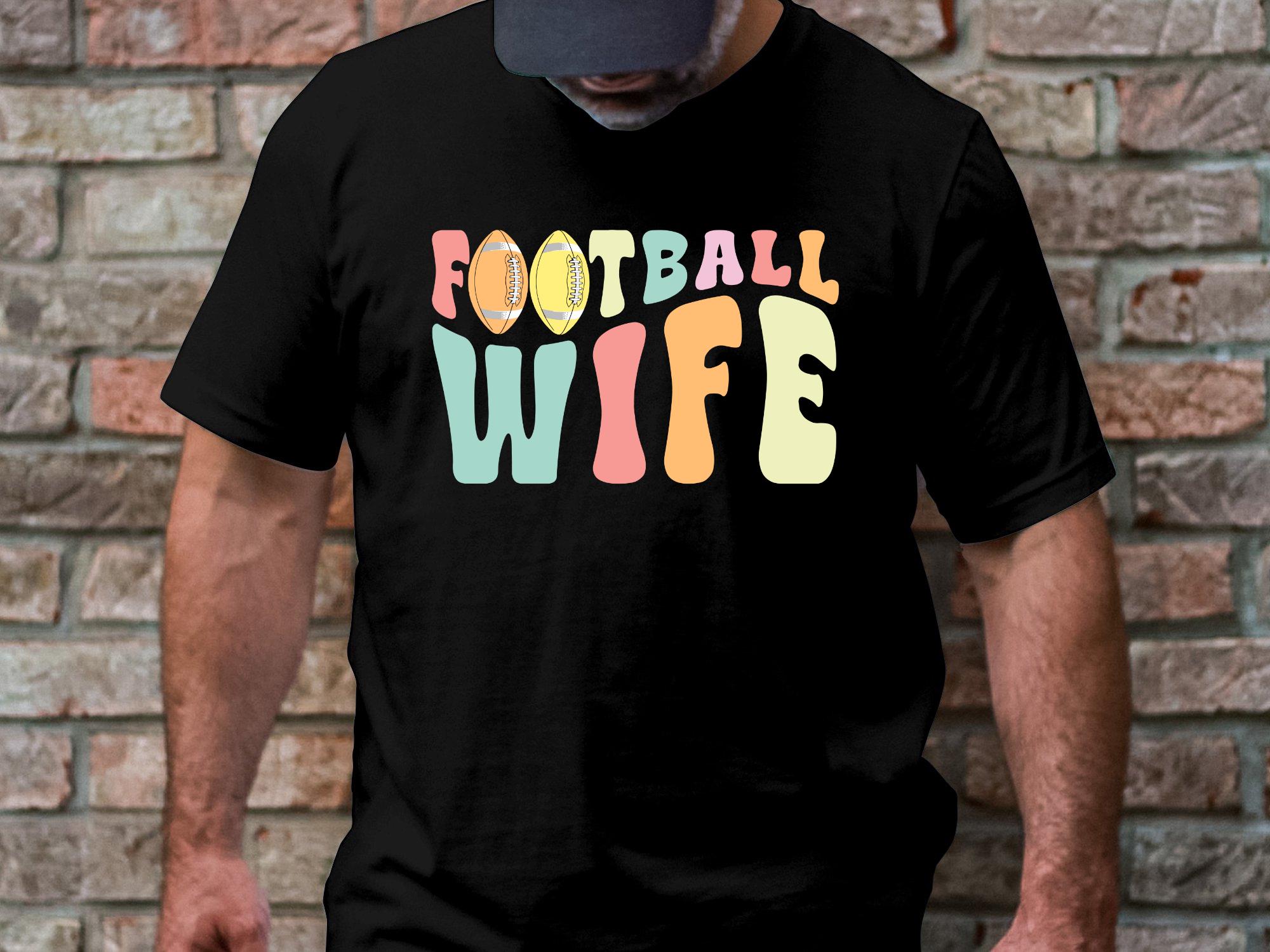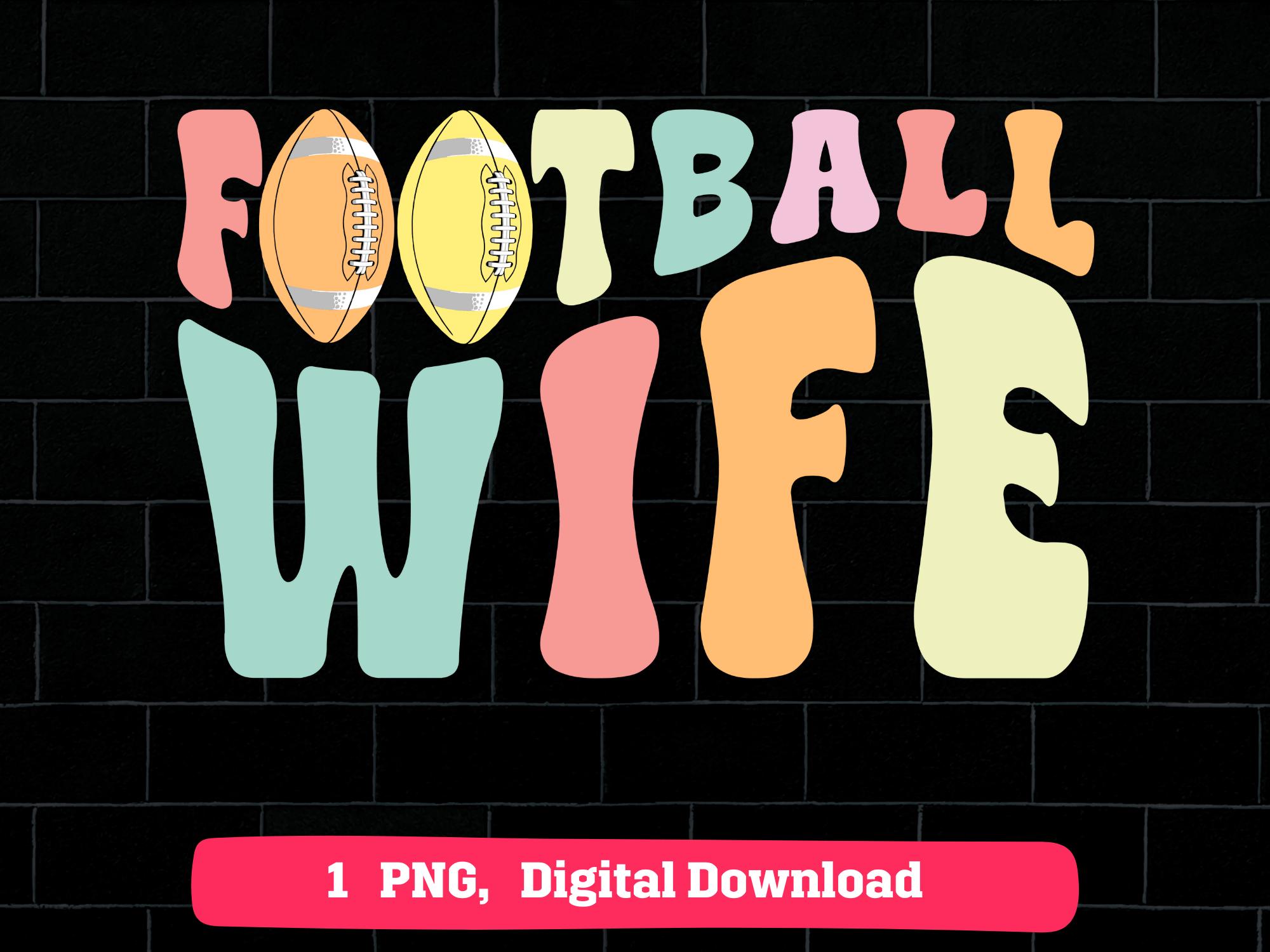 Funny “Football Wife” design in groovy retro pastel colors with football graphics. Perfect PNG for football wives who love humor and vintage sports style — great for shirts, mugs, or tote bags.