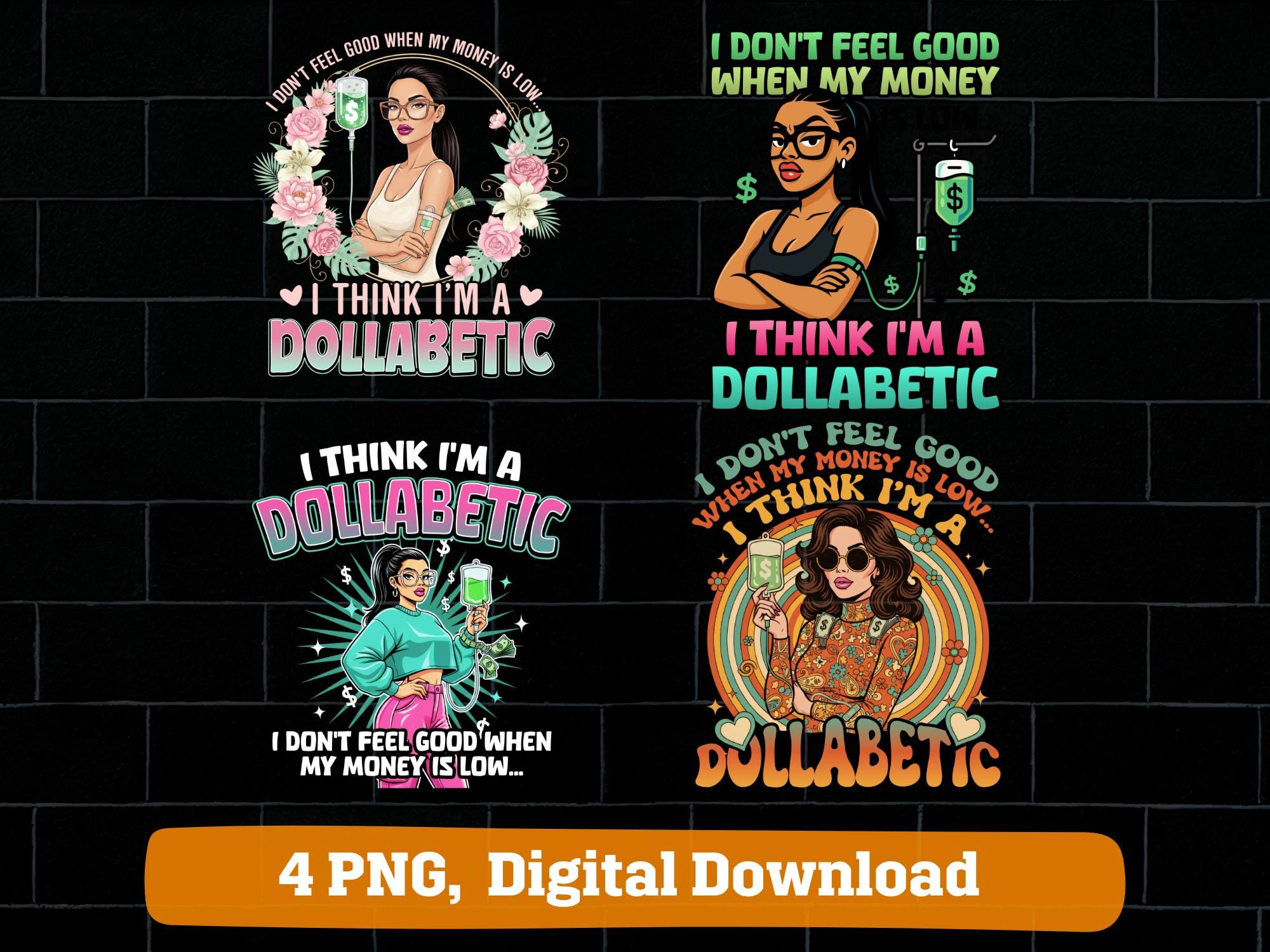 This Dollabetic money humor PNG design is perfect for sublimation on shirts, mugs, tumblers, and crafting projects. Features the funny quote:
