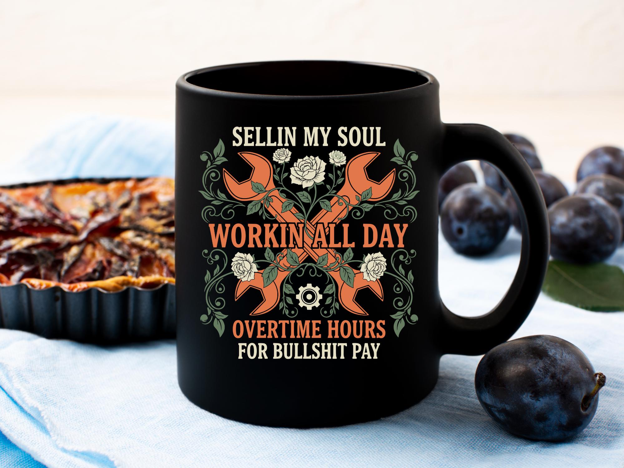 “SELLIN MY SOUL WORKIN ALL DAY OVERTIME HOURS FOR BULLSHIT PAY.”