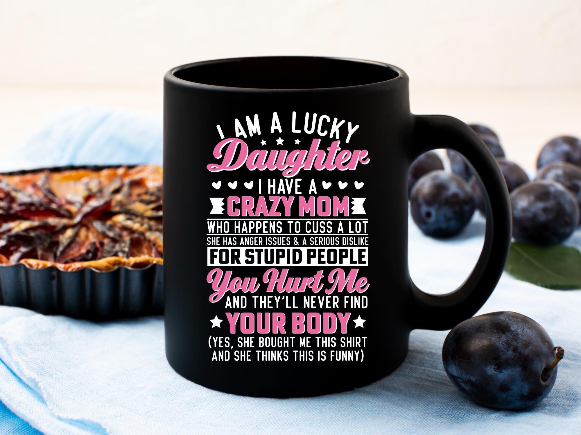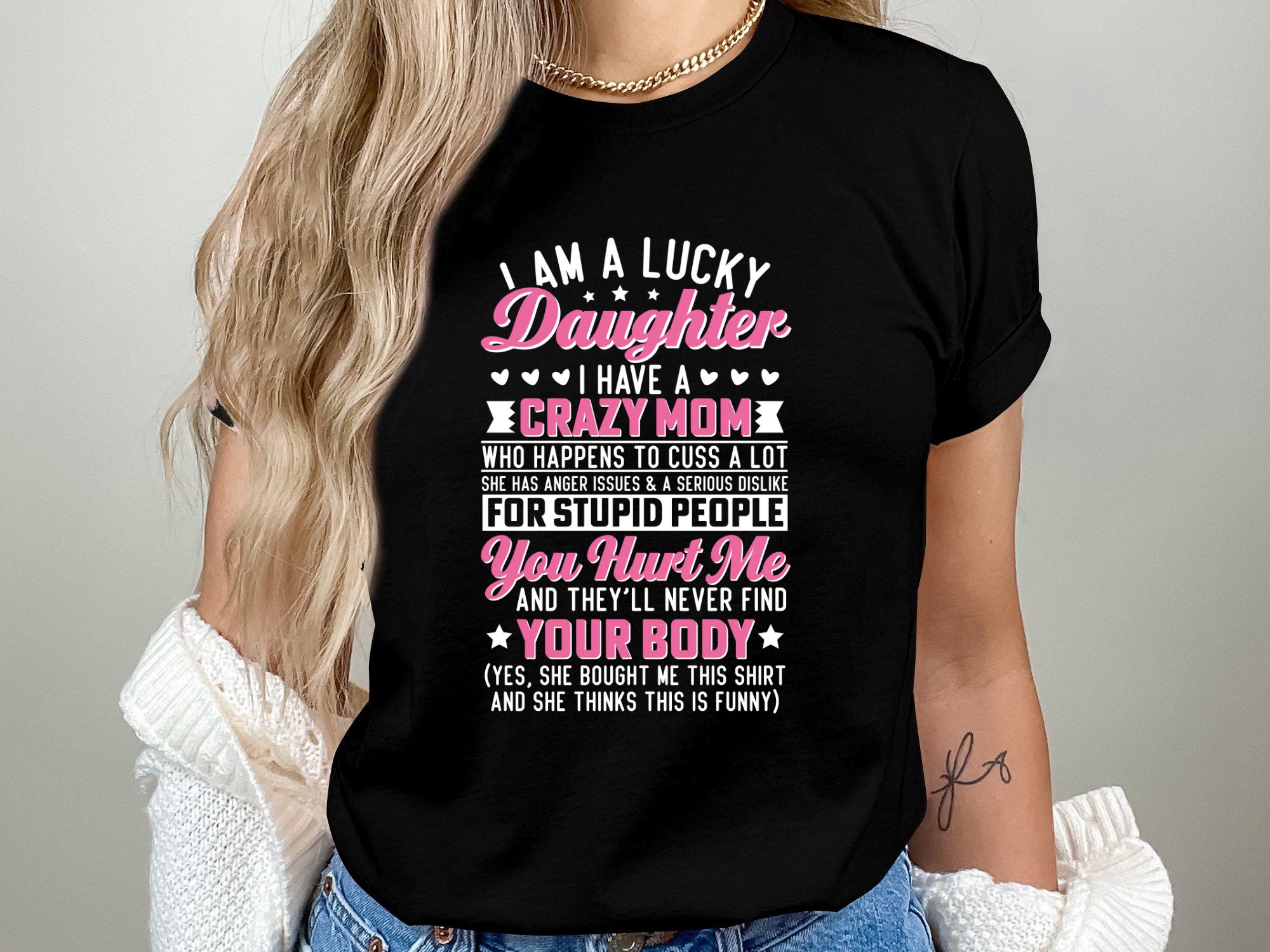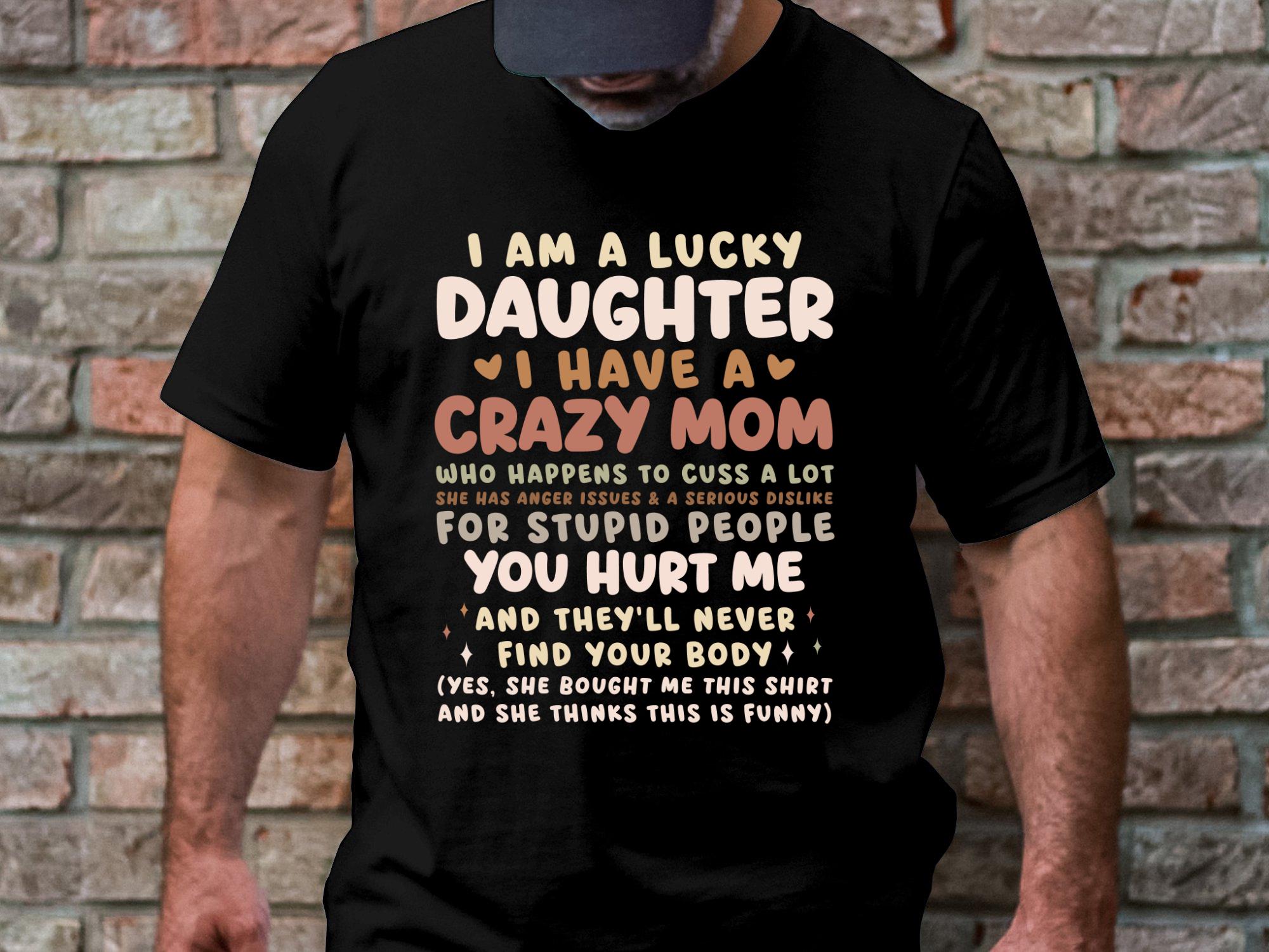 Lucky Daughter Crazy Mom Funny Quote sublimation PNG — perfect for daughters who love humor and protective mom jokes. Great for printing, Cricut projects, and Mothers Day humor designs.