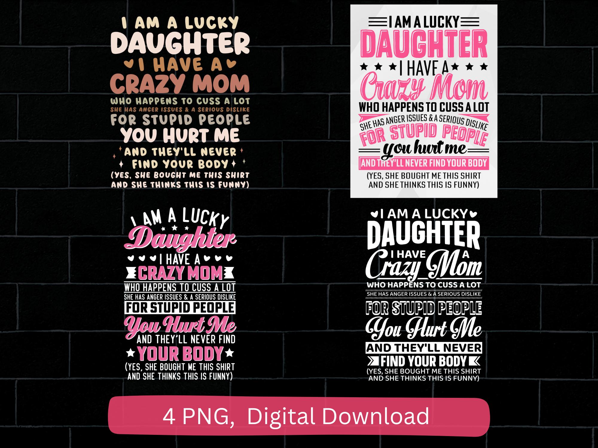 Design Quote Included: “I am a lucky daughter I have a crazy mom… You hurt me and they’ll never find your body” (Yes this is the quote on the design)