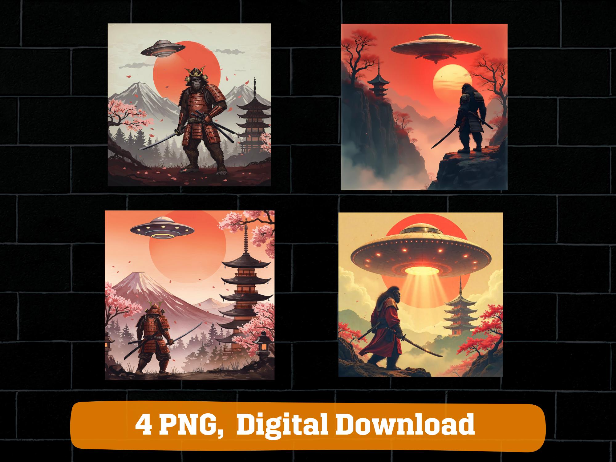 Samurai Gorilla with UFO sci-fi crossover art — perfect for Japanese culture lovers who enjoy wild warrior creature designs. Great for sublimation, printing and Cricut crafting projects.