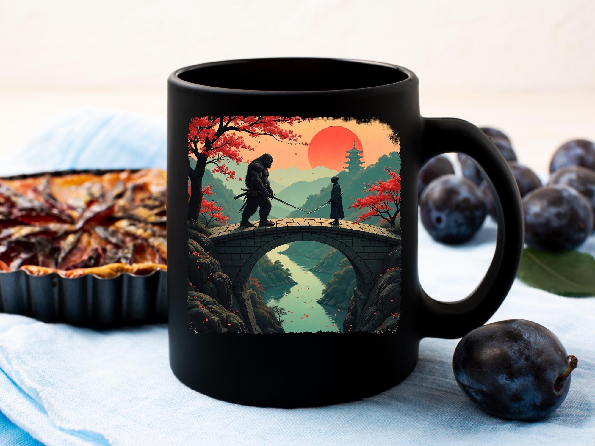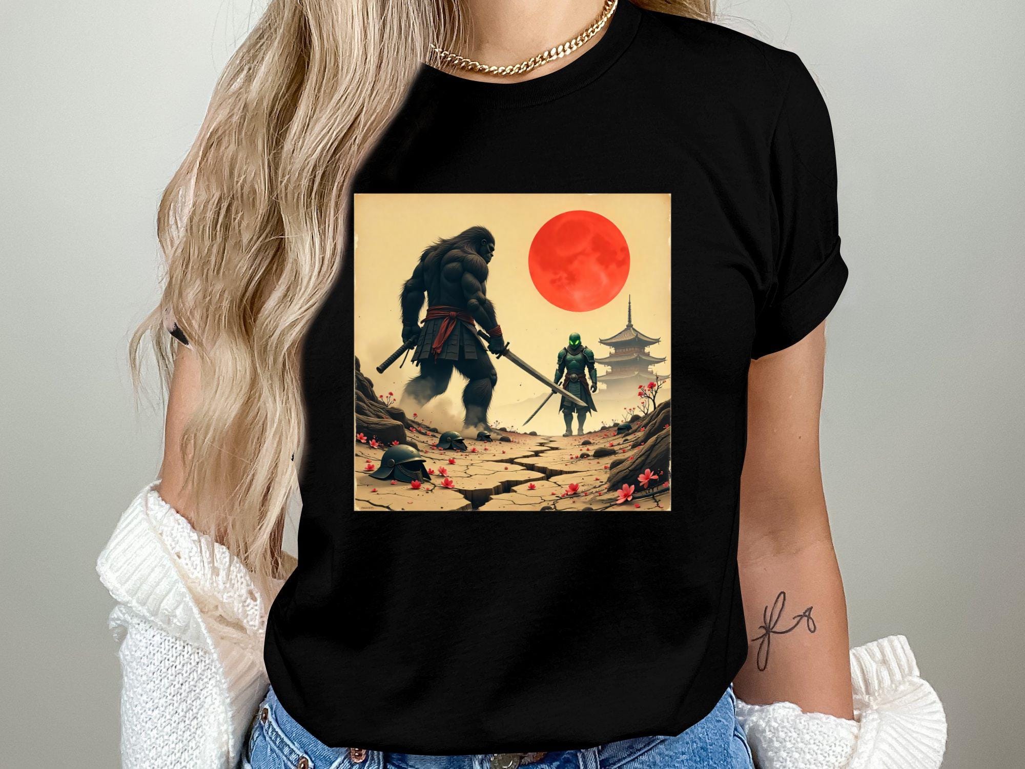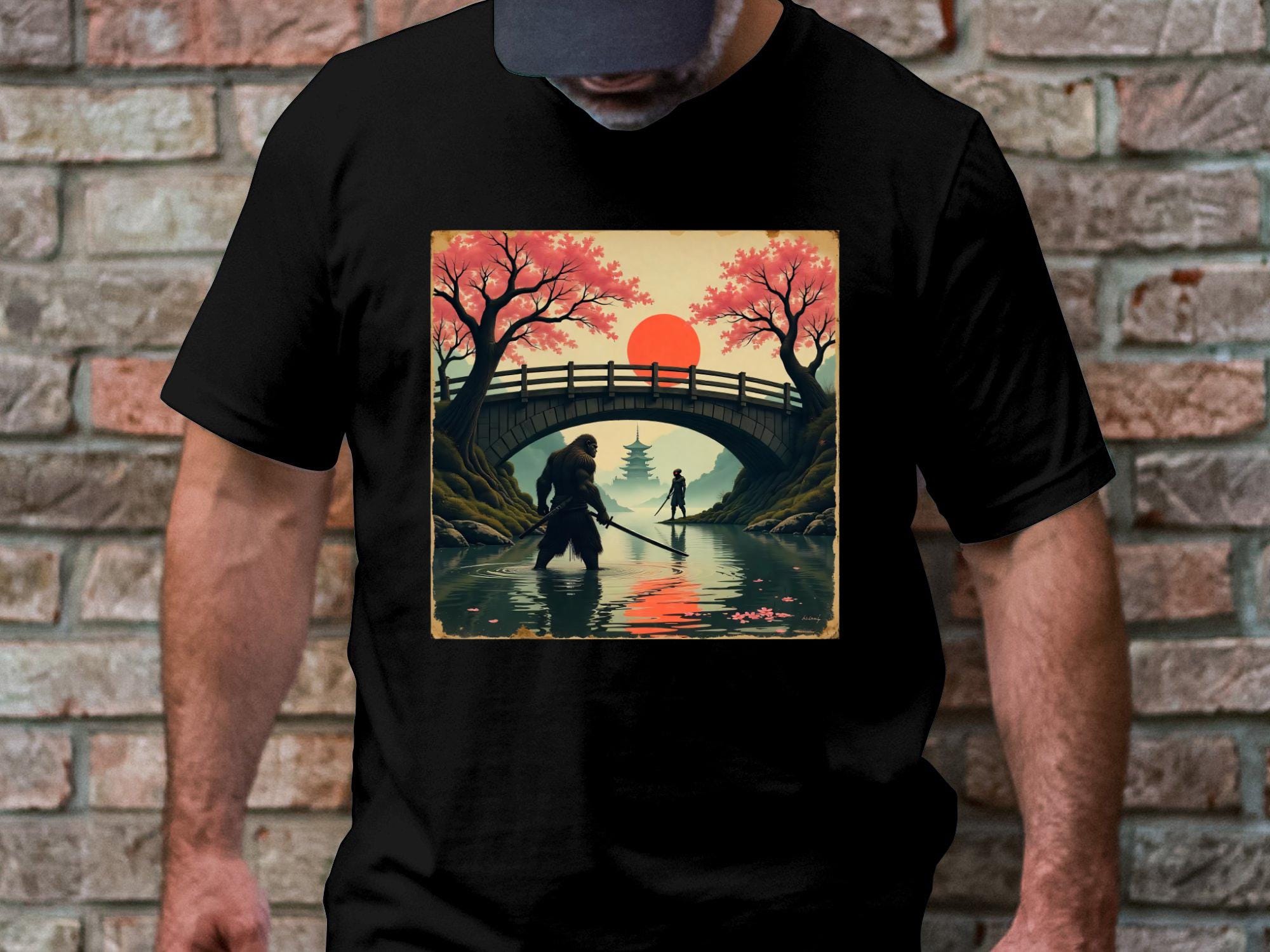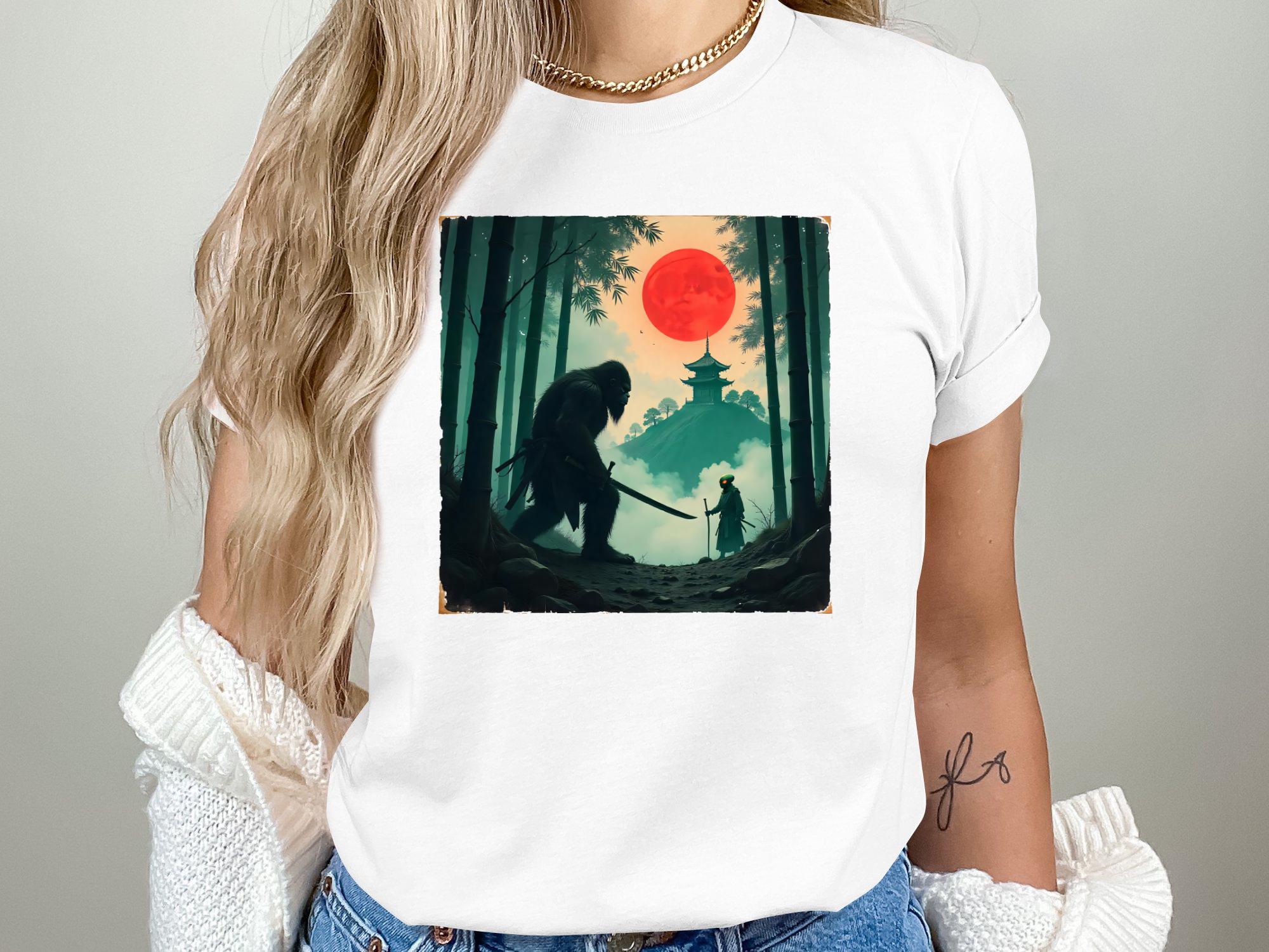 Samurai Bigfoot in an epic battle against a futuristic warrior — stunning sci-fi and Japanese mythology crossover art. Great for sublimation shirts, posters, and Cricut crafting.