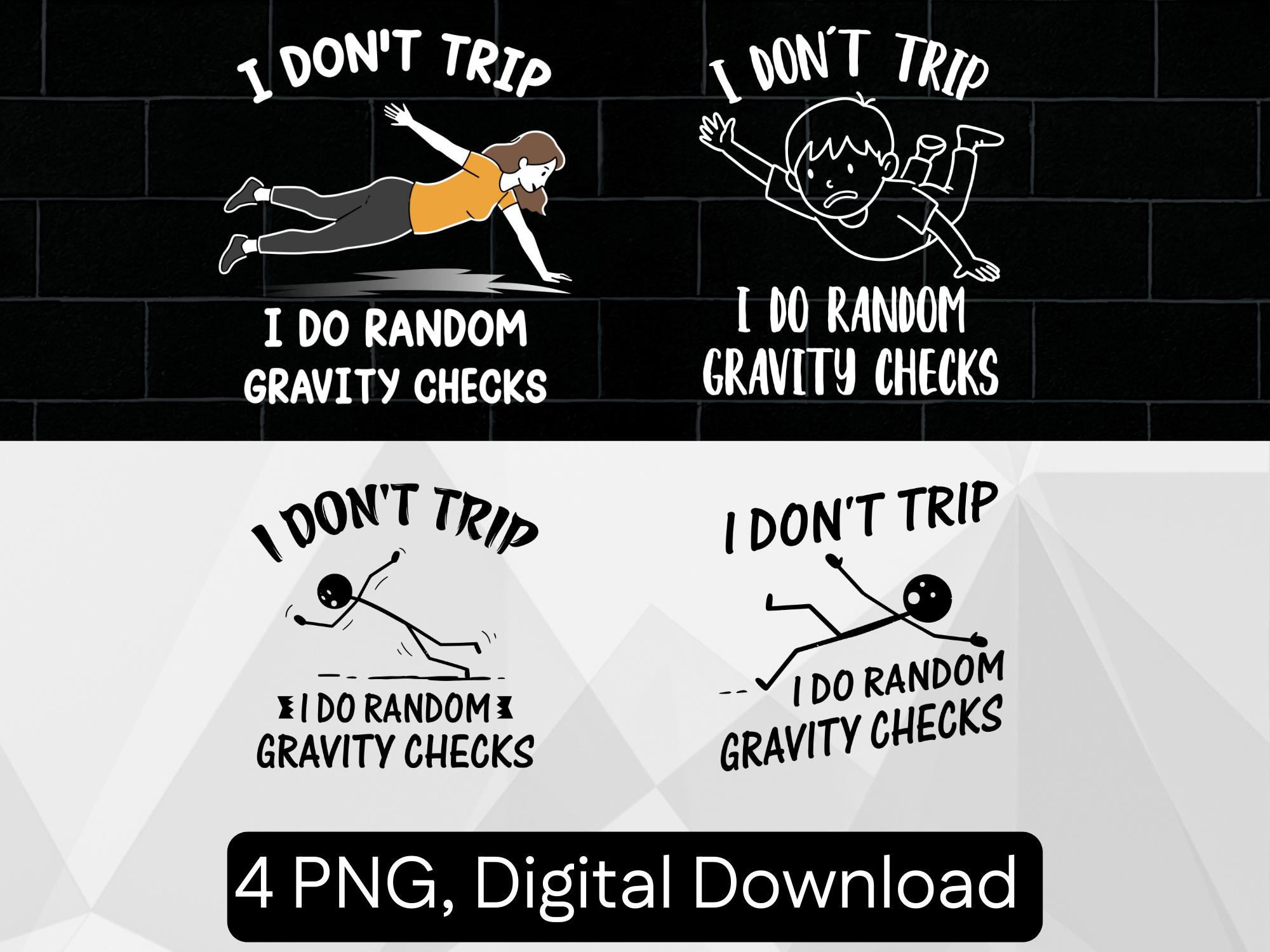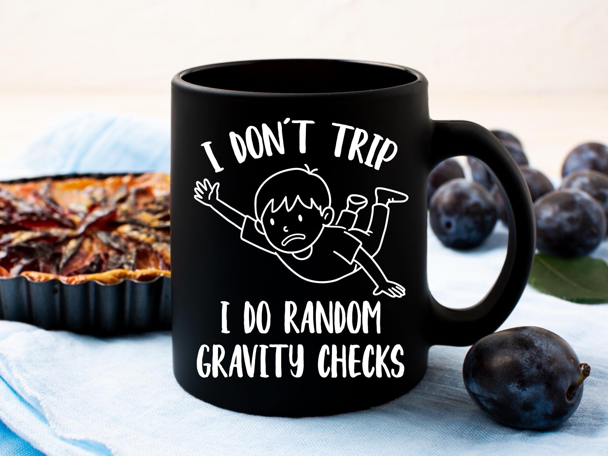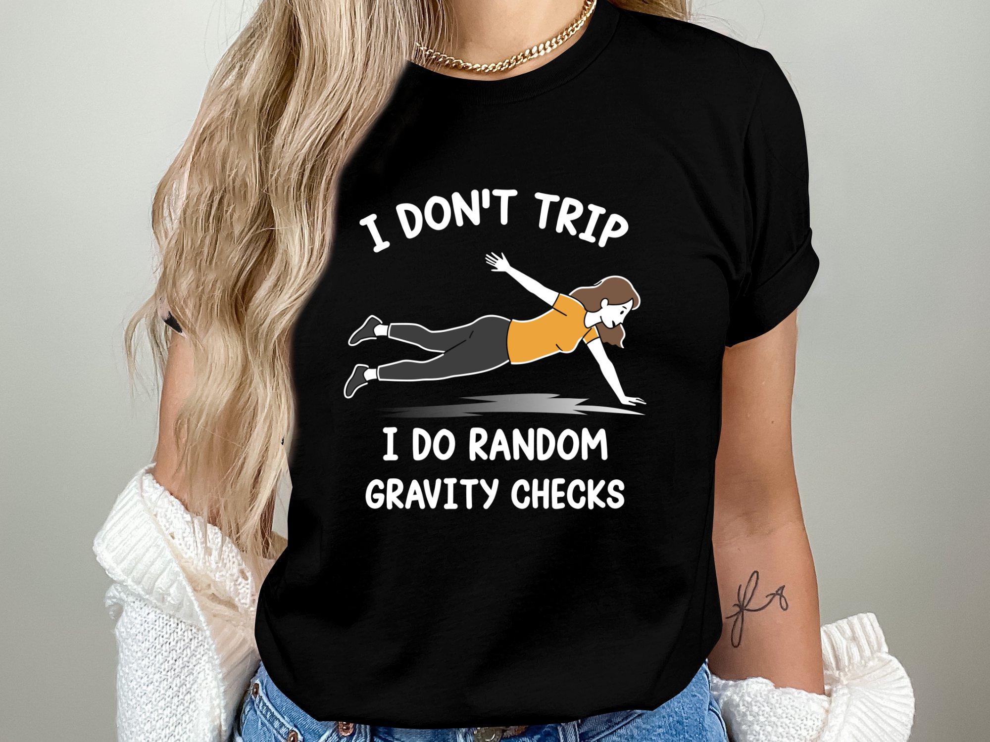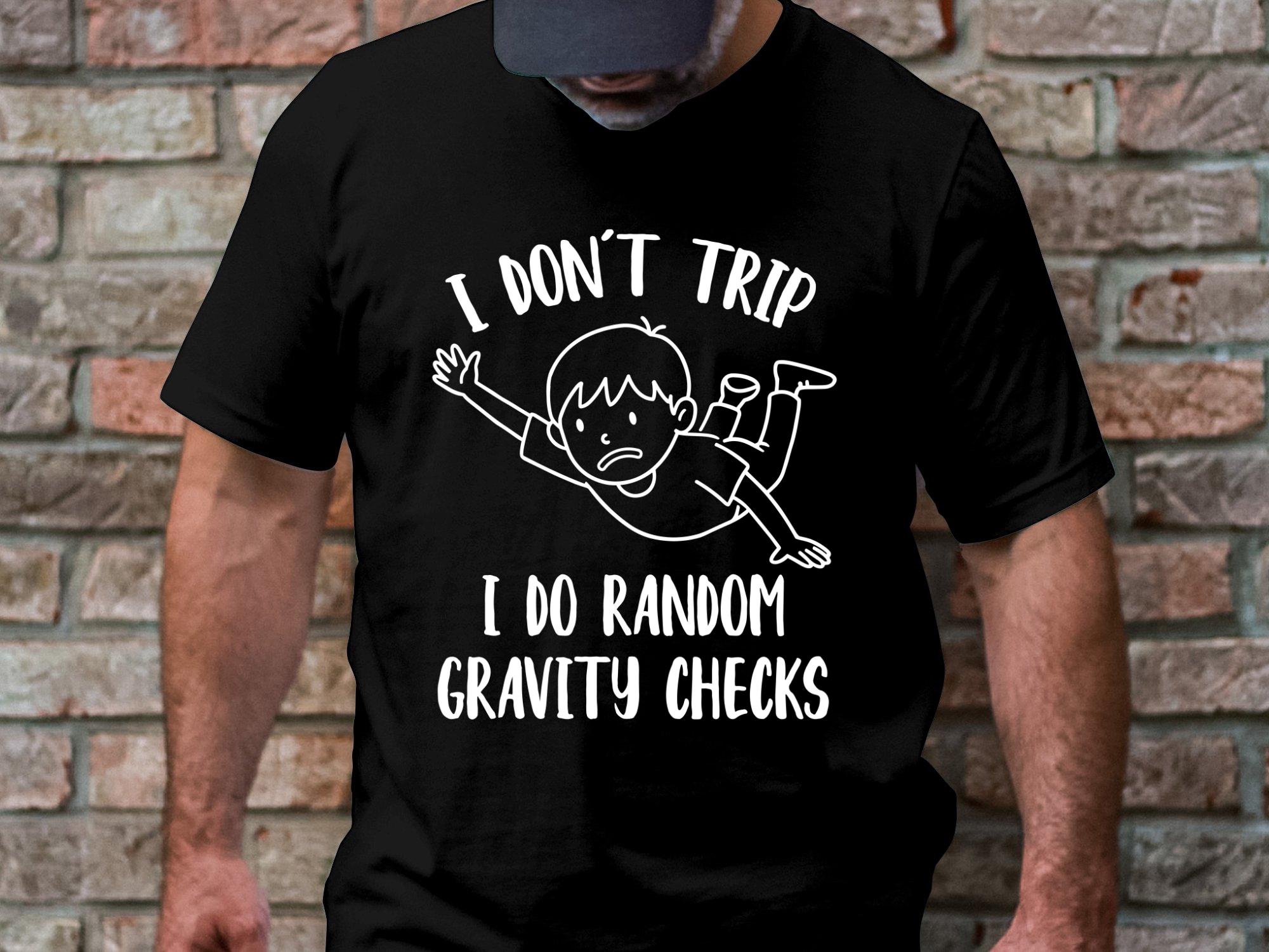 Cute funny kids cartoon illustration featuring the quote “I Don’t Trip I Do Random Gravity Checks”. Perfect for playful humor lovers, school themes, and lighthearted wall art or crafts.