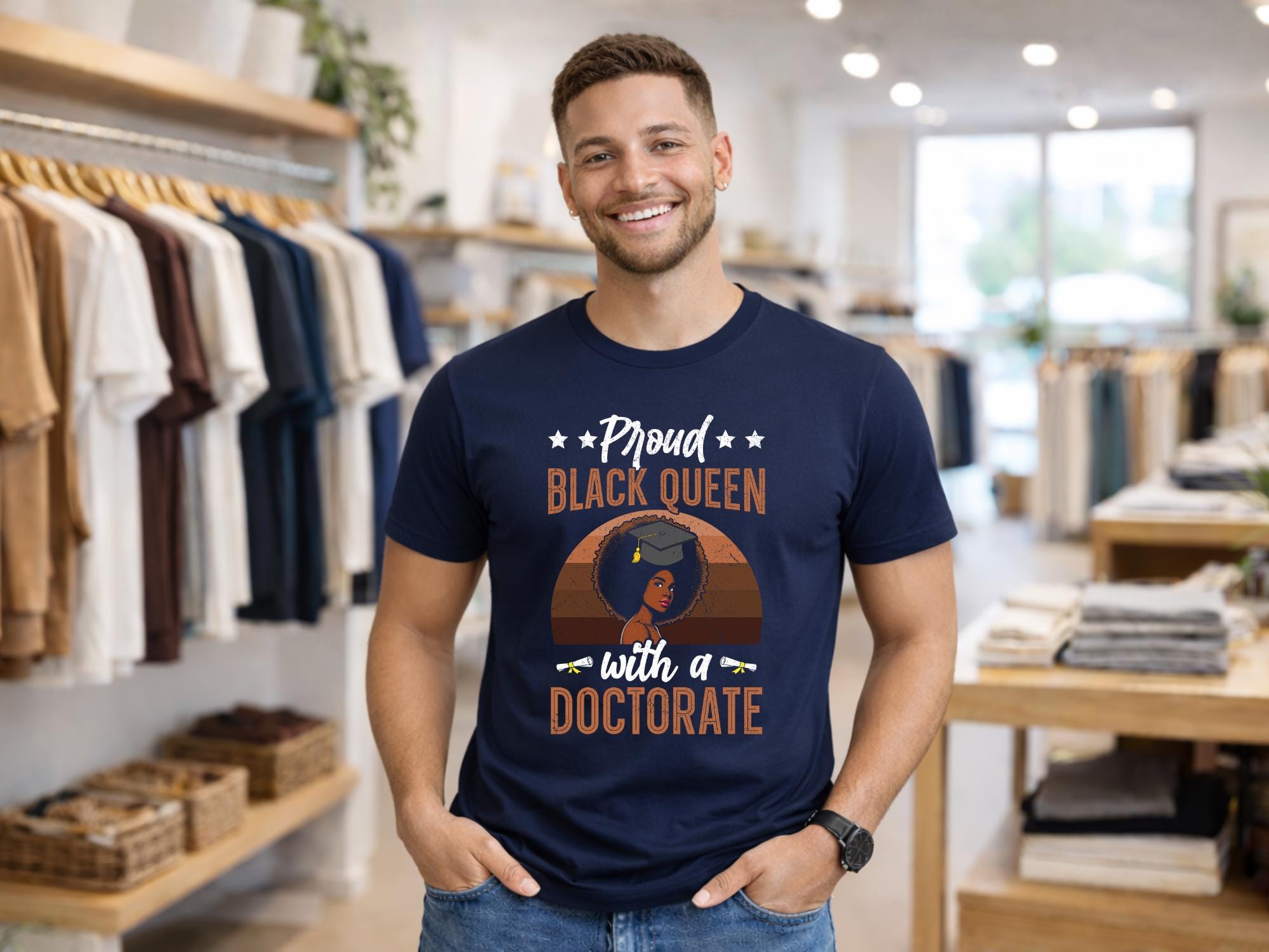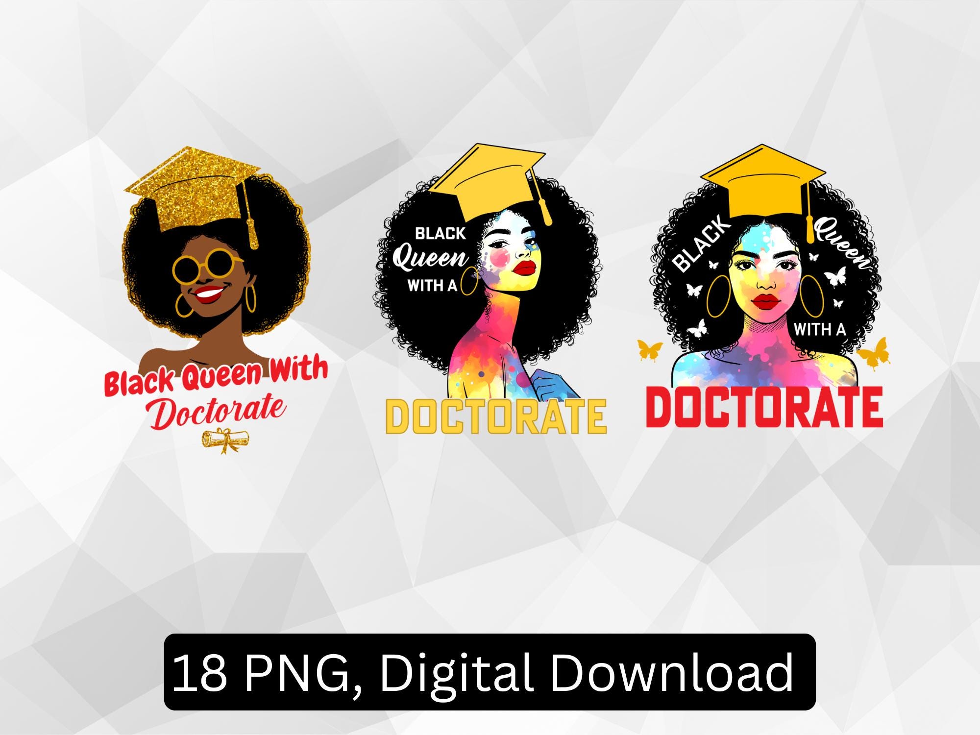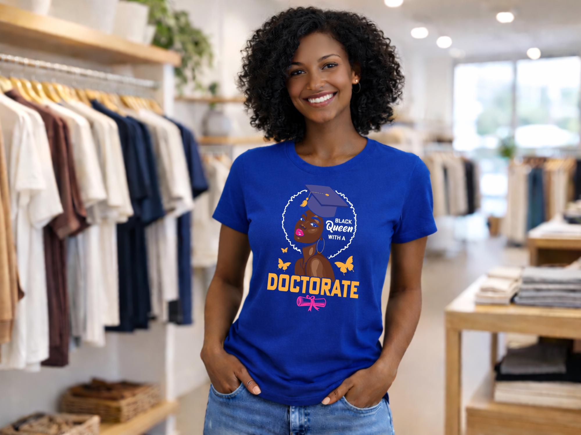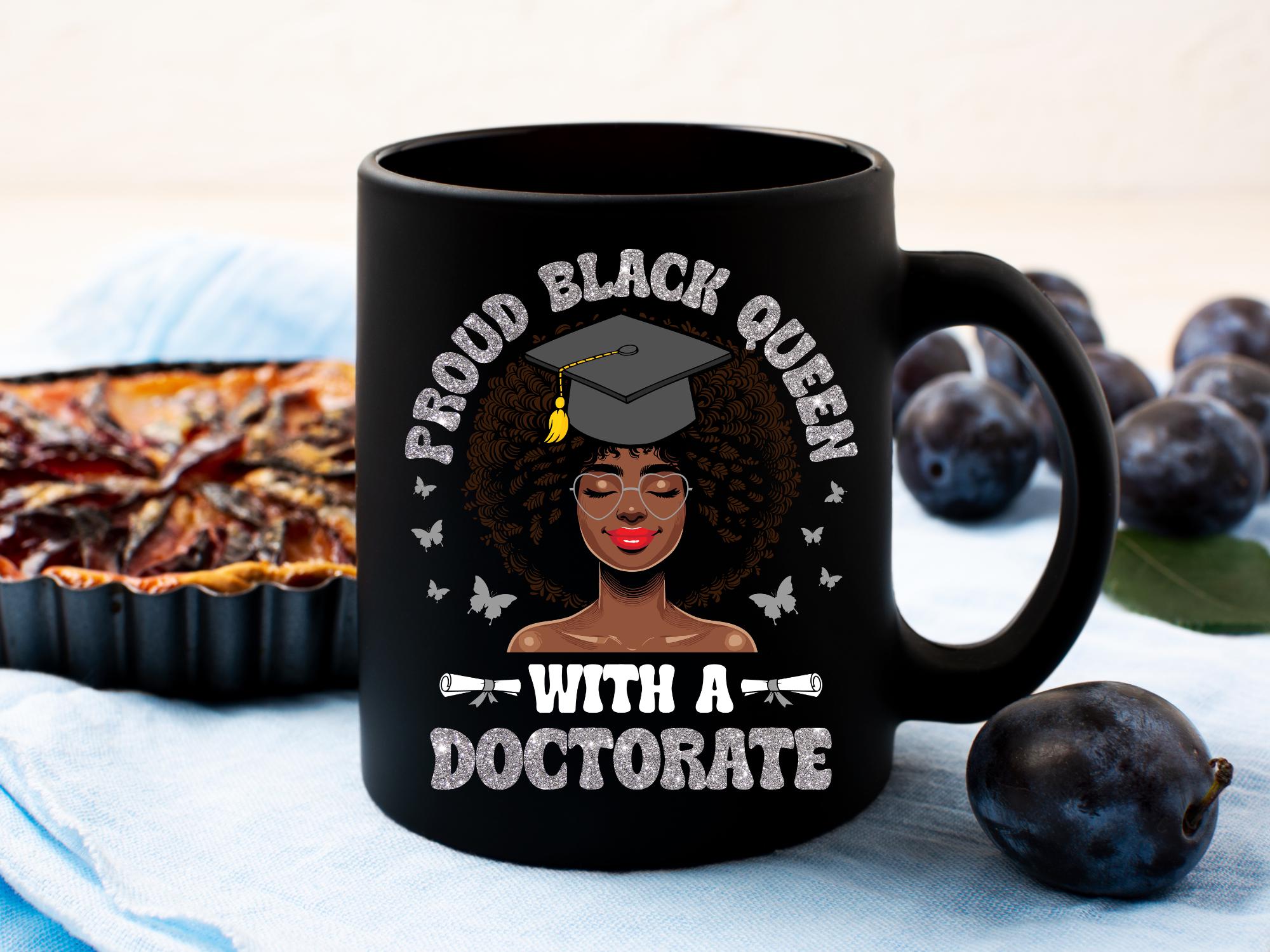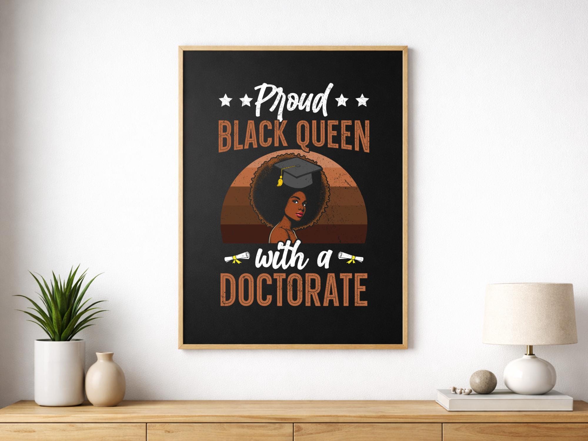 Celebrate academic excellence with this "Proud Black Queen With A Doctorate" digital design. Featuring a beautiful scholar with an afro, graduation cap, and golden butterflies, this high-resolution graphic is perfect for creating custom graduation apparel, mugs, and party decor for the new Doctor in your life. This sophisticated aesthetic honors the hard work and dedication of educated women reaching their highest goals.
