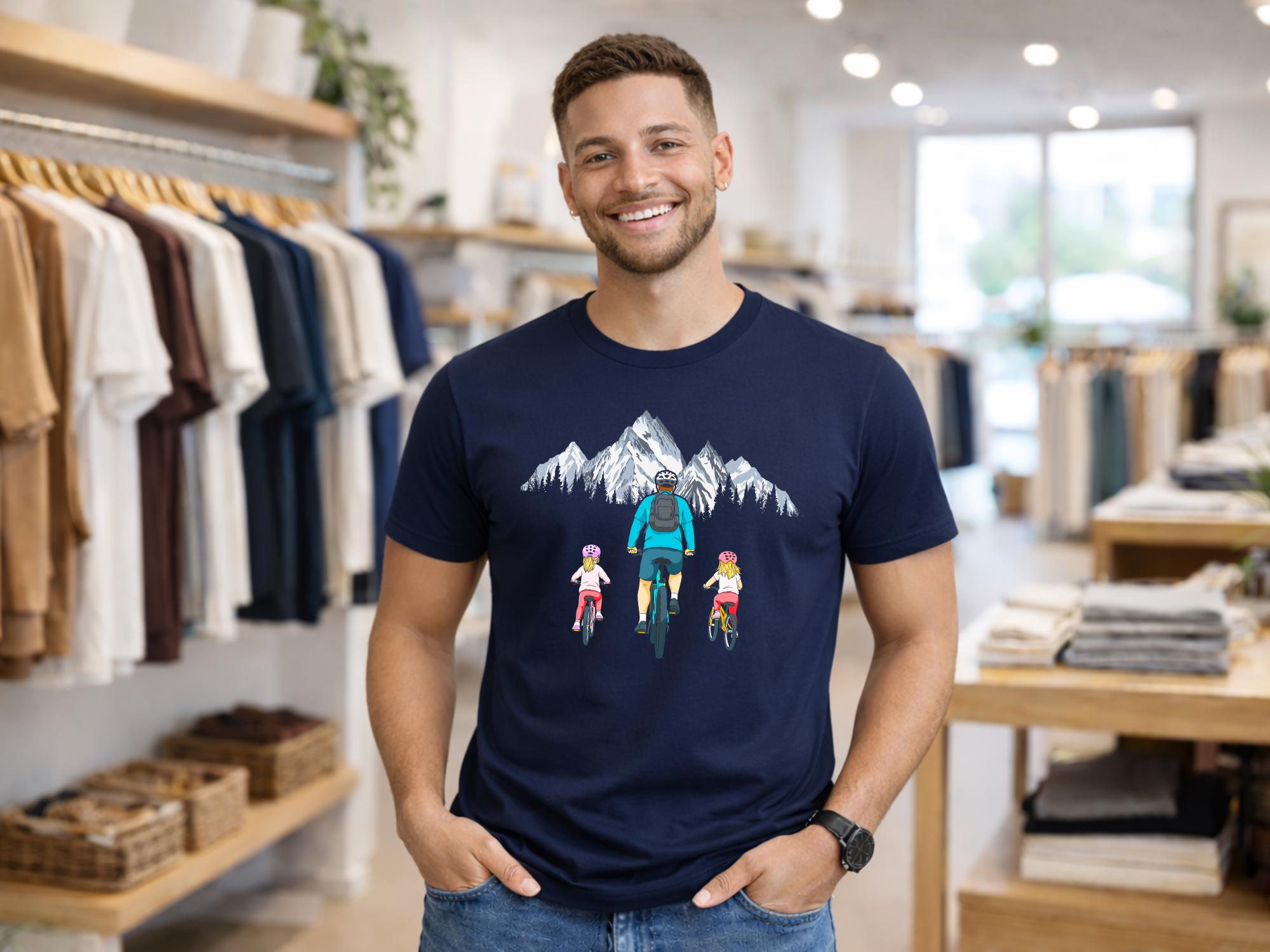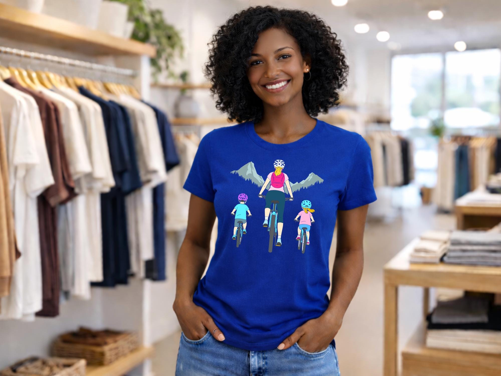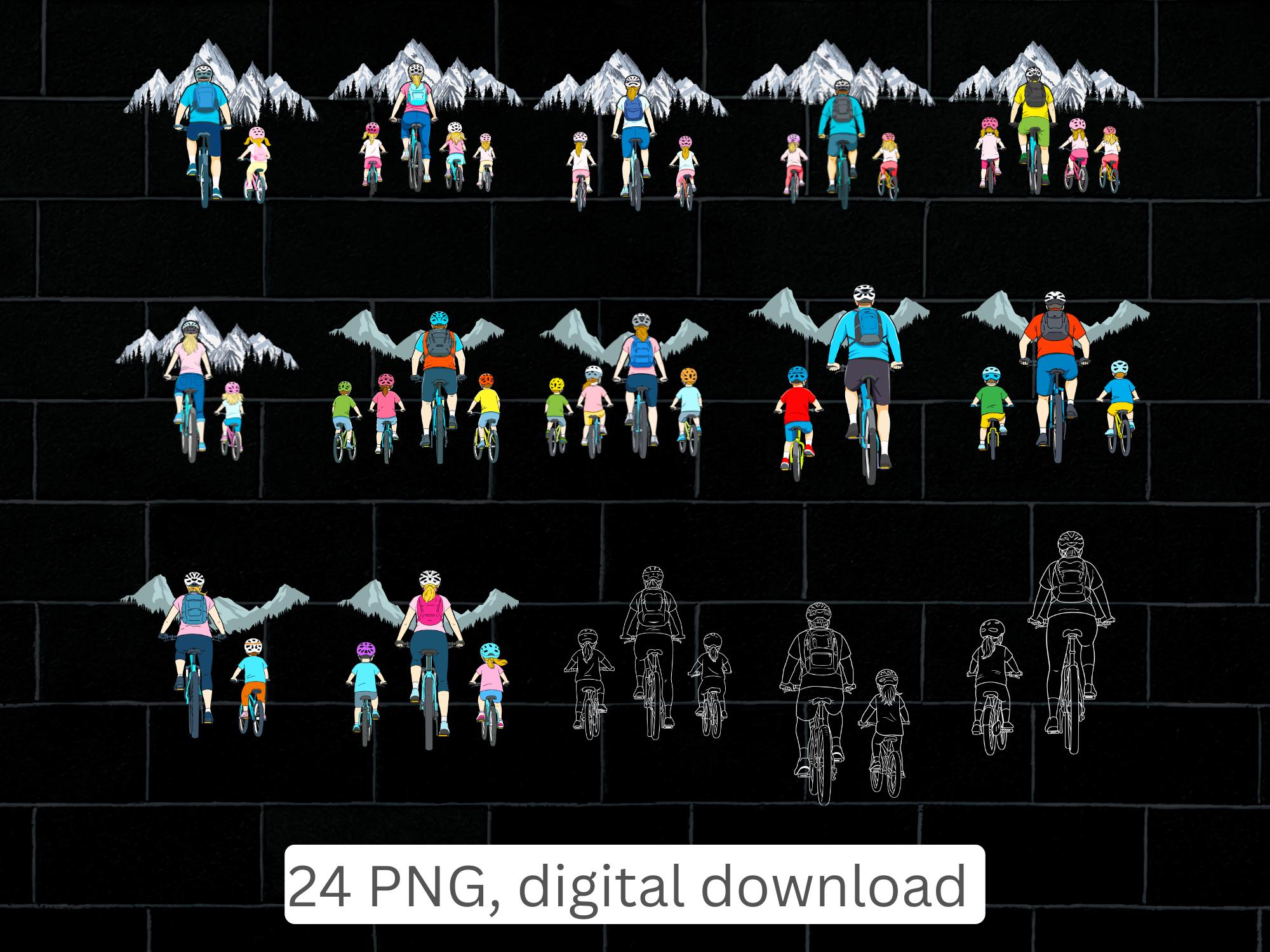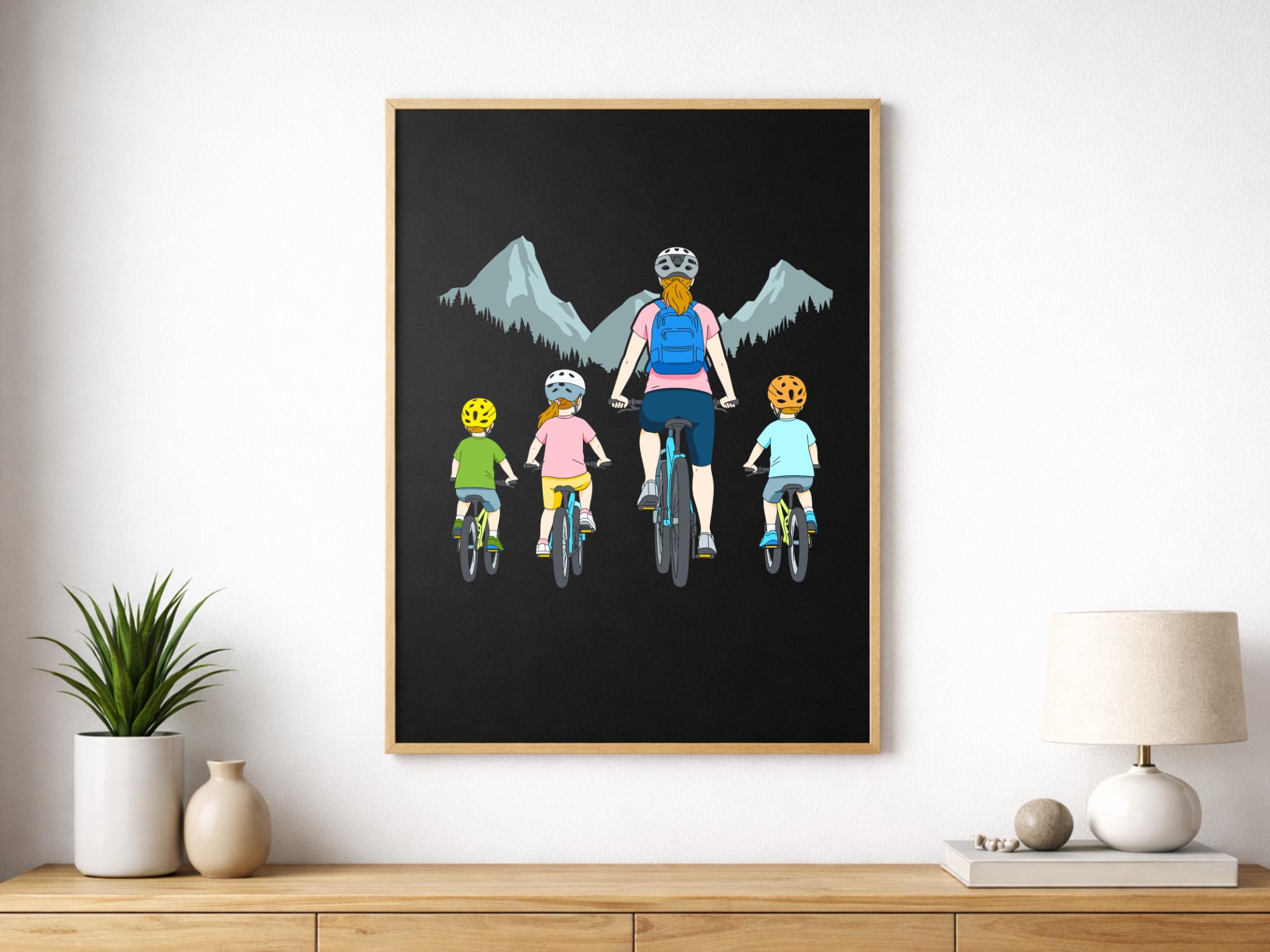 Celebrate the joy of the trail with this Mountain Biking Family Illustration Bundle. Featuring hand-drawn silhouettes of a father and mother riding with their daughters against a stunning mountain backdrop, these designs are perfect for creating custom t-shirts, mugs, or scrapbooks for the adventurous family.