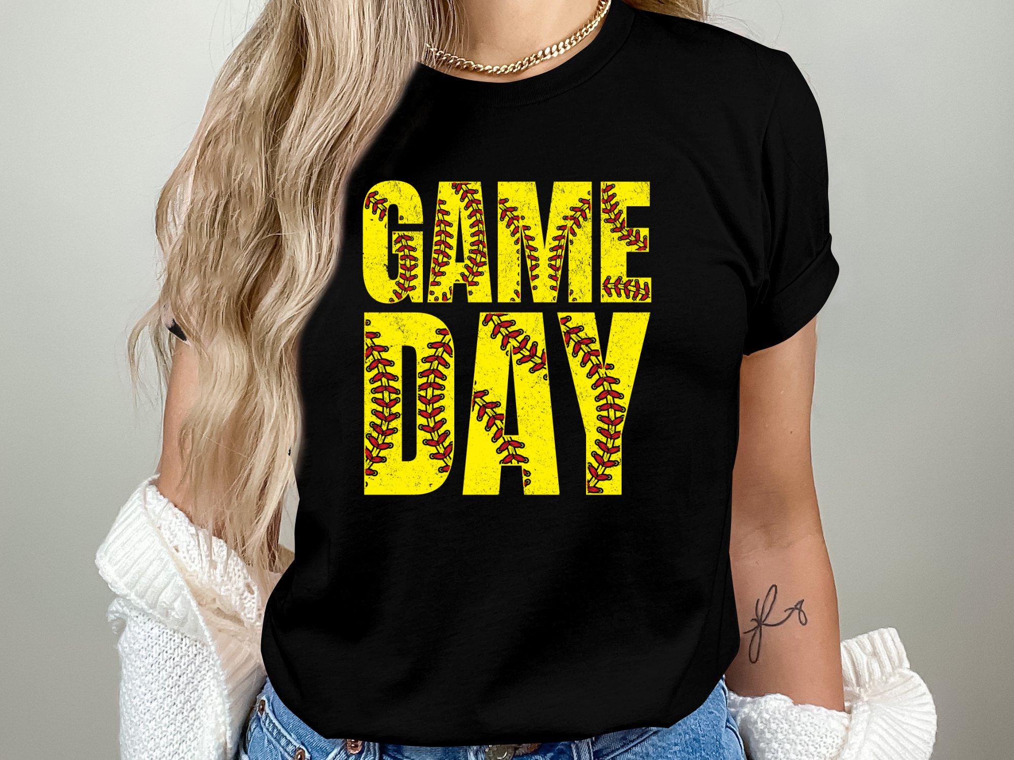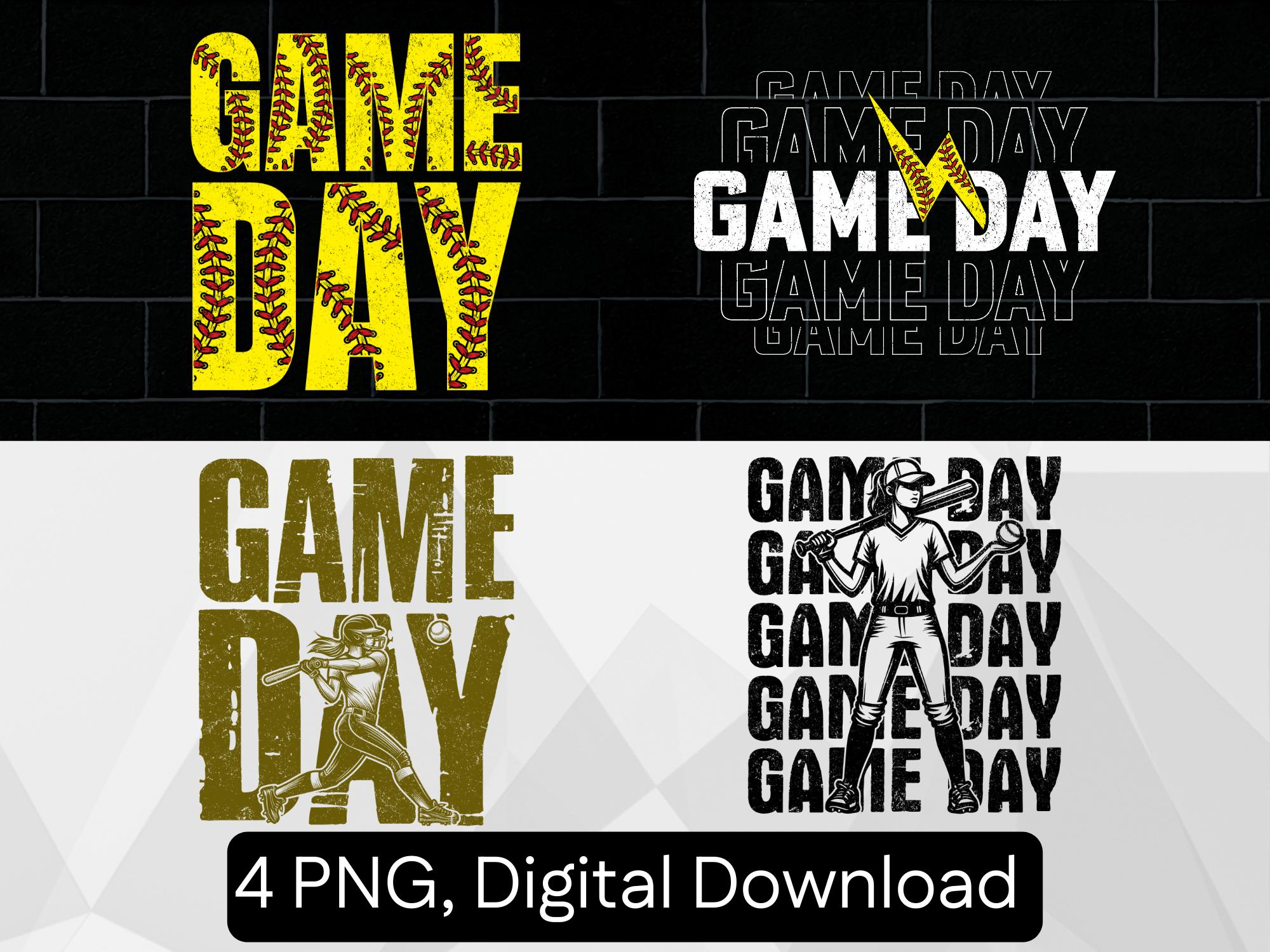 Step up to the plate with this "GAME DAY" softball digital design! Featuring a vintage distressed style and classic fastpitch imagery, this high-resolution PNG is perfect for creating custom team jerseys, fan hoodies, and tournament gear.