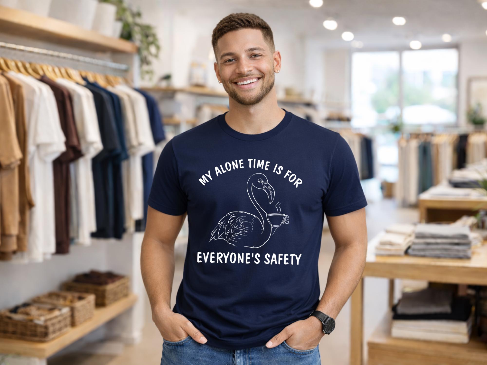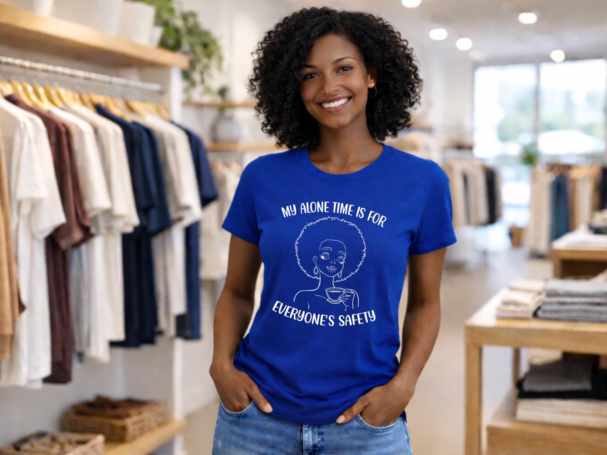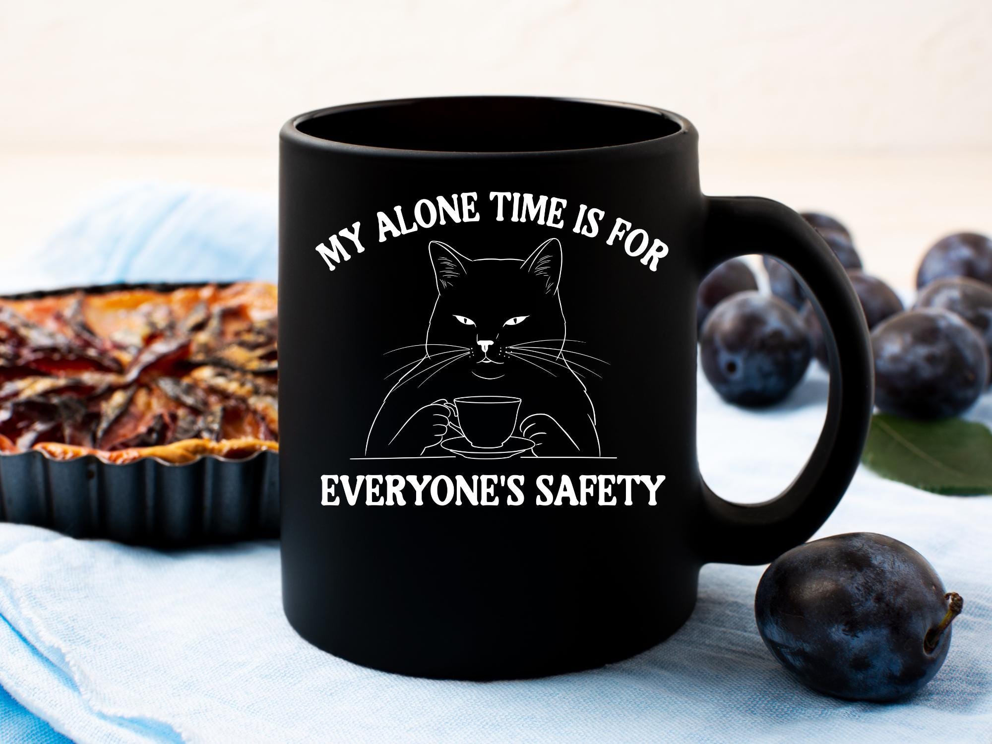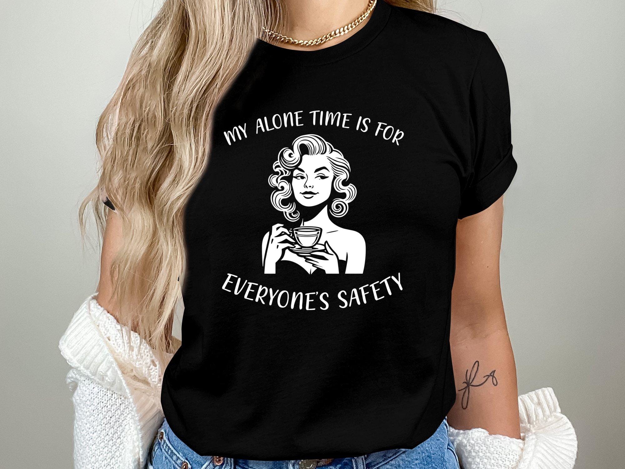 My Alone Time Is For Everyone's Safety, funny coffee lover quote artwork featuring stylish women, cat, and flamingo line art illustrations. Perfect for introverts, caffeine addicts, and sarcastic humor fans. Great for shirts, mugs, stickers, and Cricut projects.