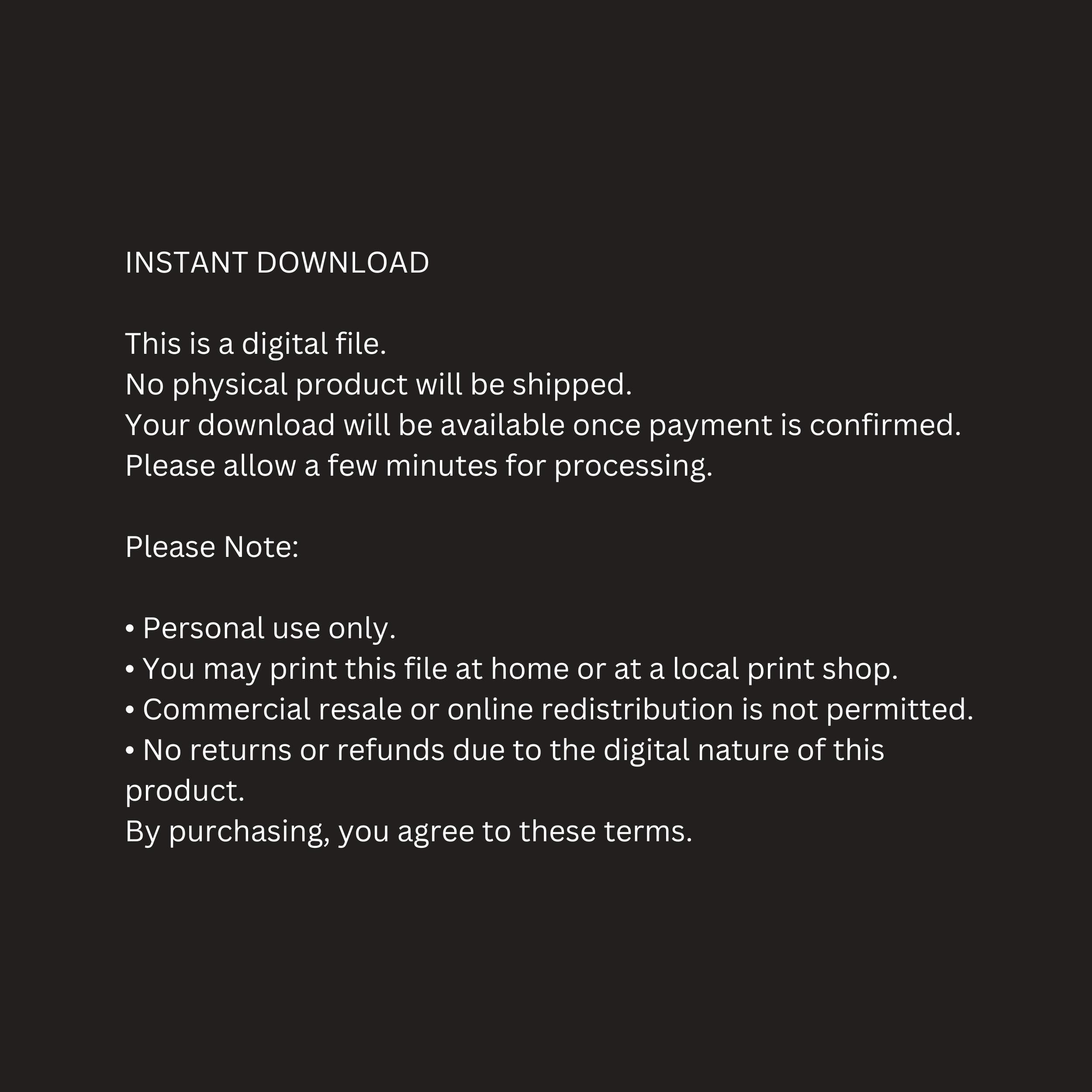 An Instant Download File Not Physical Product will be shipped.