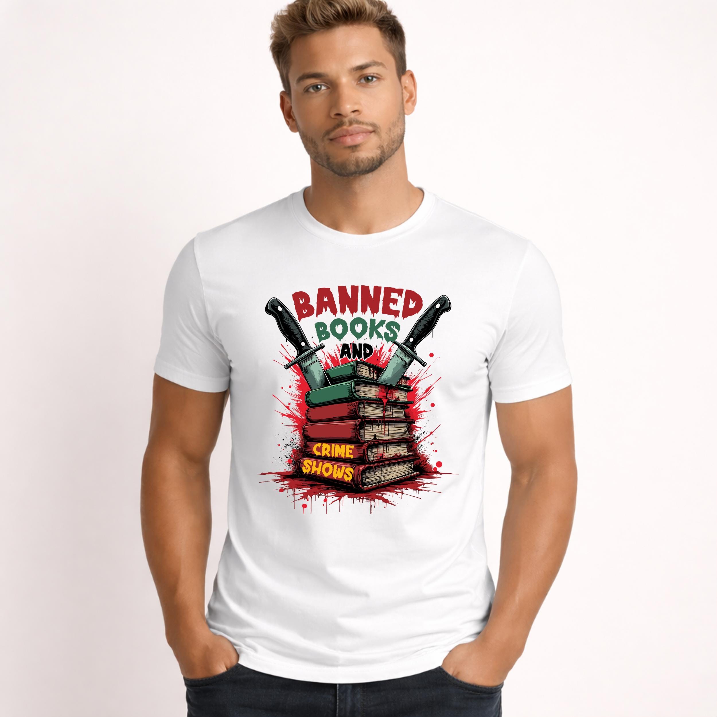 The quote “Banned Books and Crime Shows” celebrates true crime readers and book lovers. This PNG digital download is perfect for sublimation, Cricut crafts, shirts, mugs, stickers, and creative printing projects.