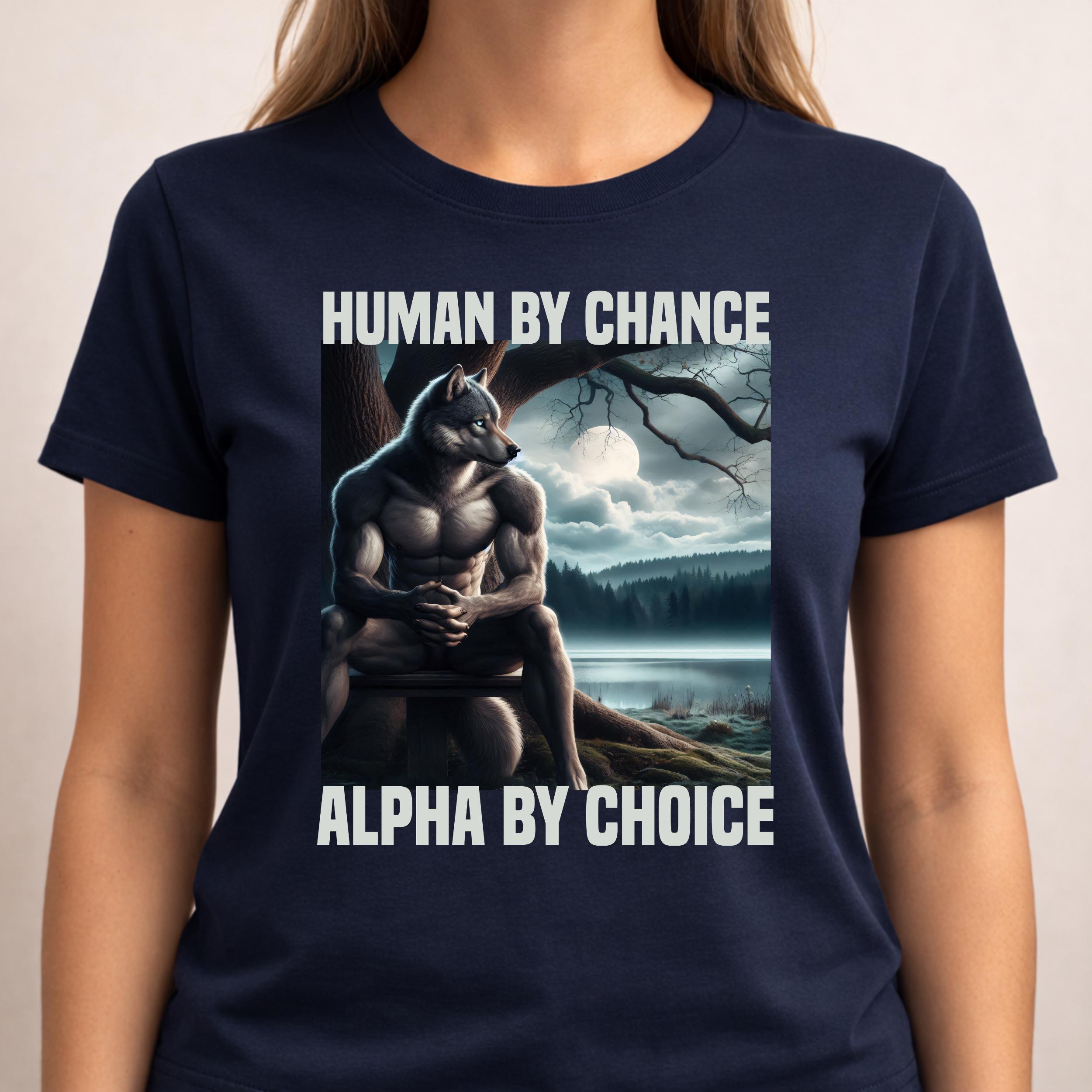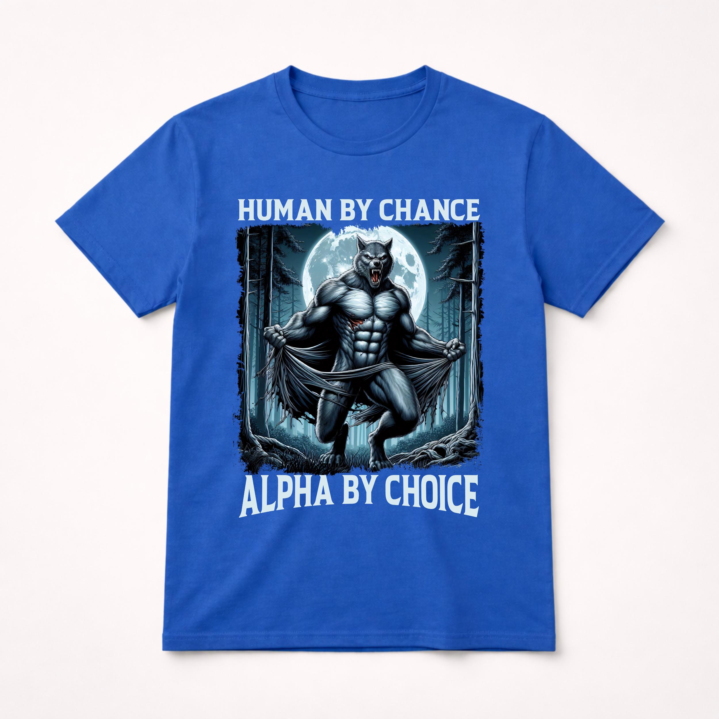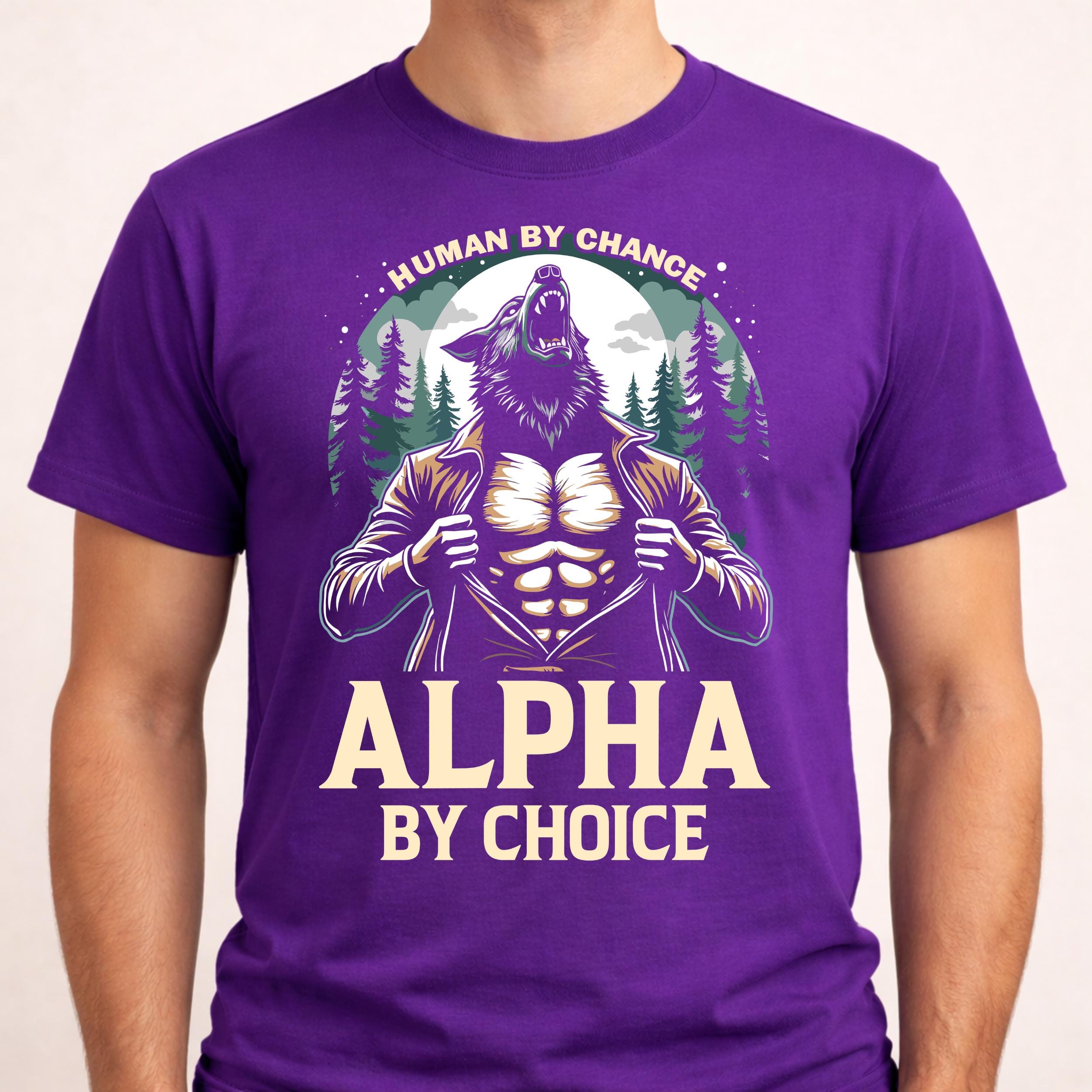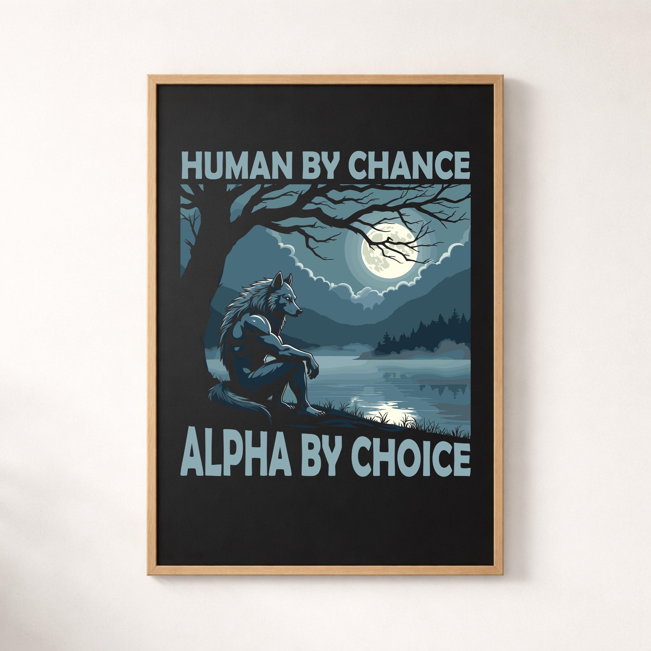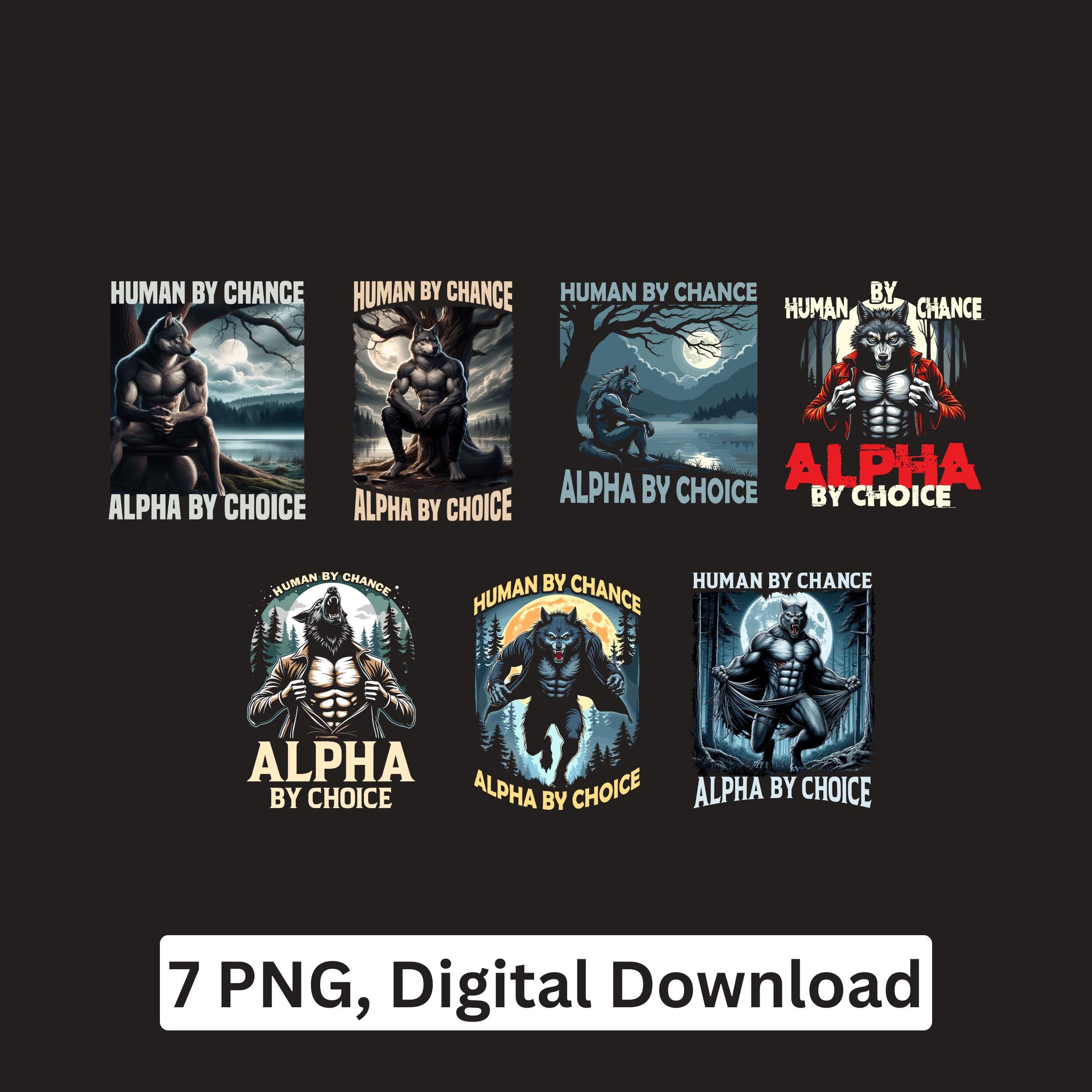Powerful werewolf design featuring the quote “Human By Chance Alpha By Choice”. Perfect for wolf lovers and alpha mindset fans. This PNG digital download is great for sublimation, Cricut crafts, shirts, mugs, stickers, and printing projects.