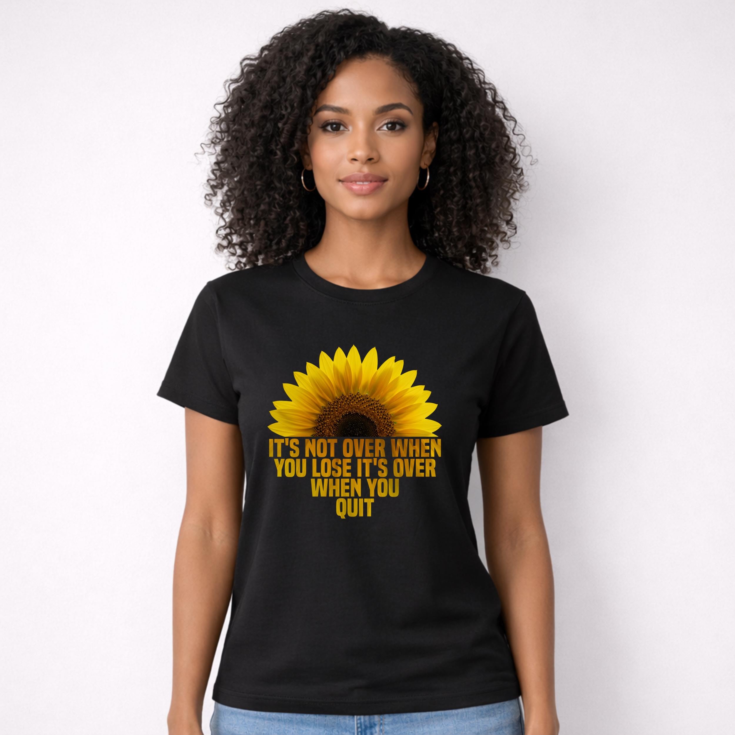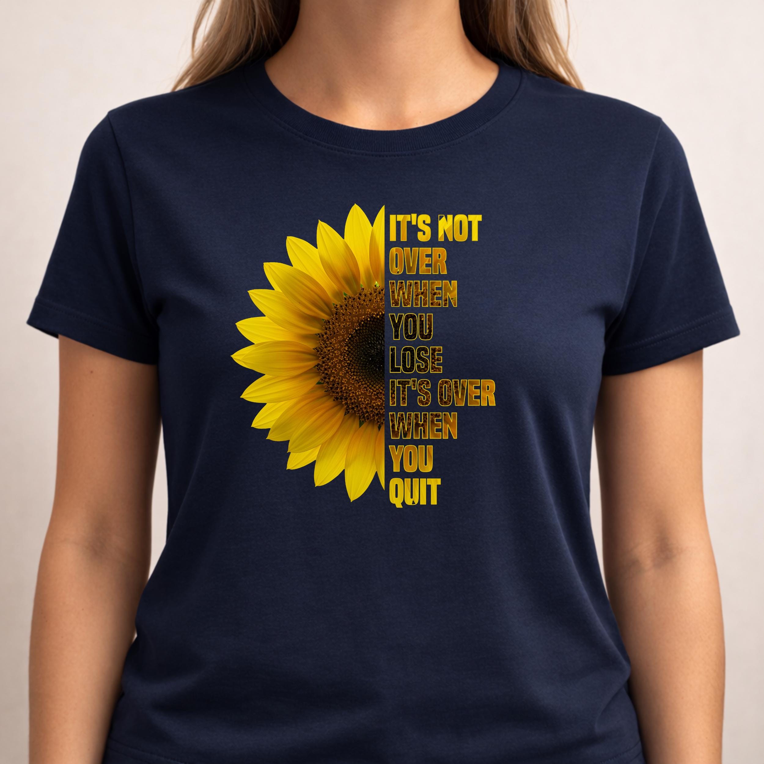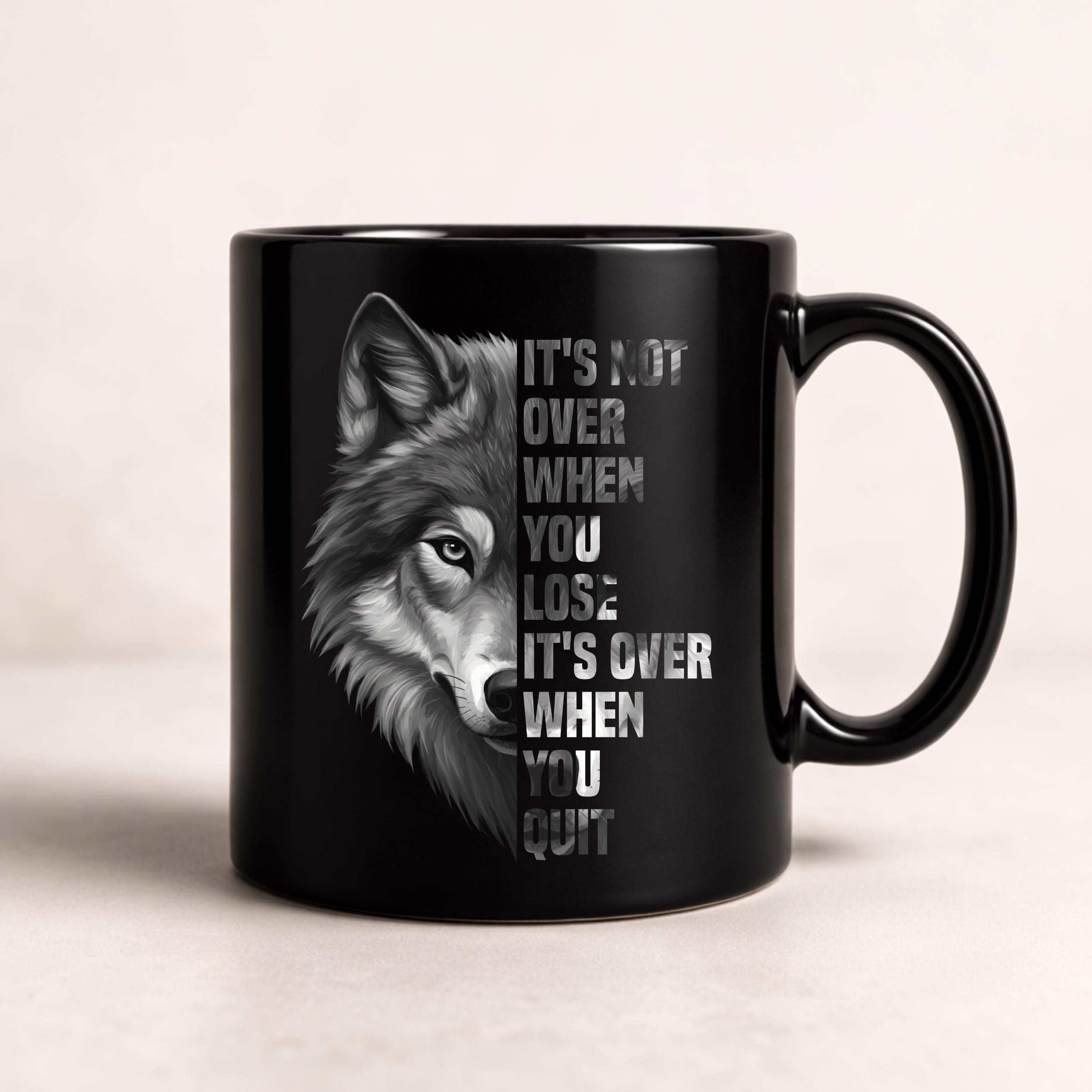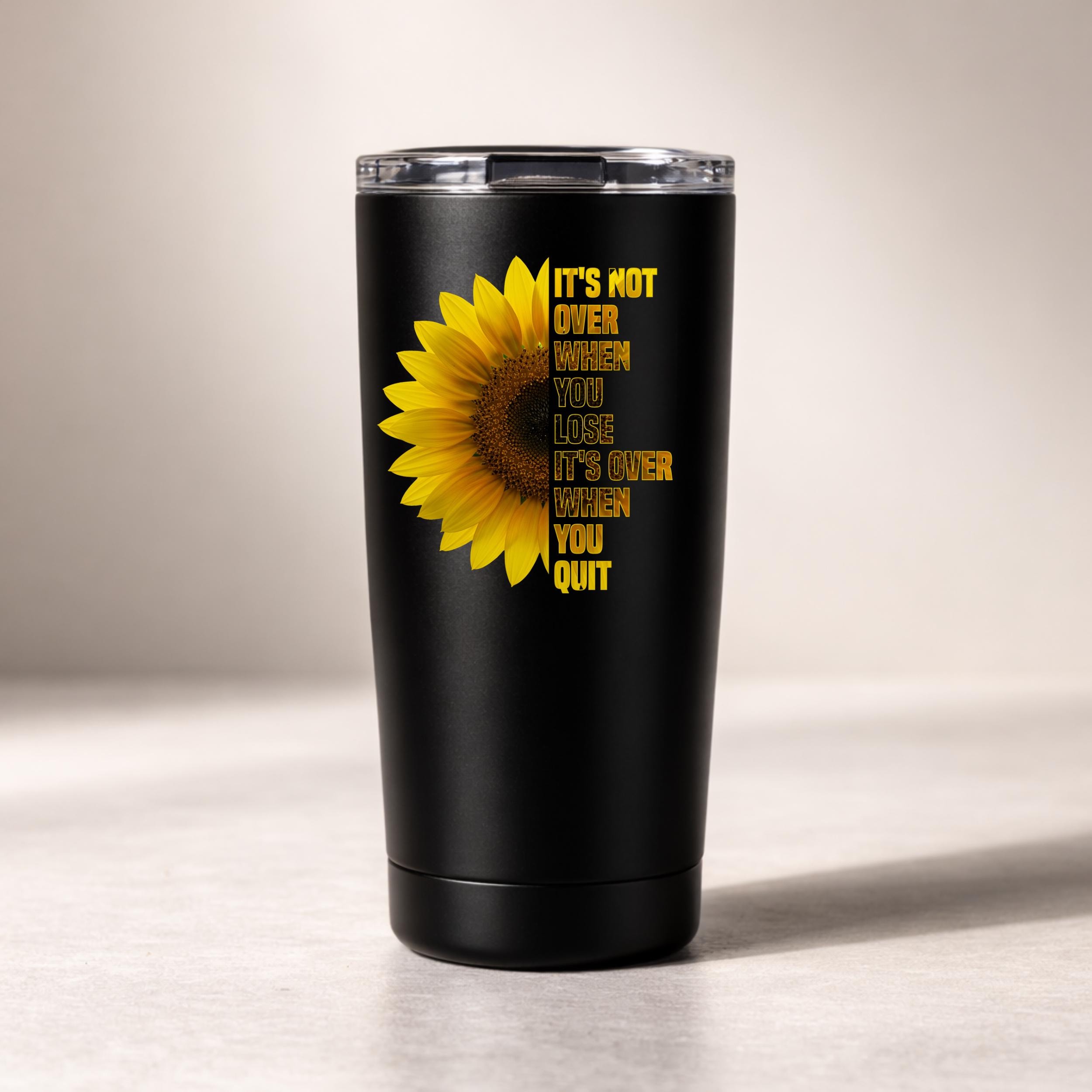 “It’s Not Over When You Lose It’s Over When You Quit” motivational animal design PNG. Features lion, wolf, and sunflower visuals. Perfect for inspiration lovers. Ideal for sublimation, Cricut crafts, shirts, mugs, stickers, and printing projects.