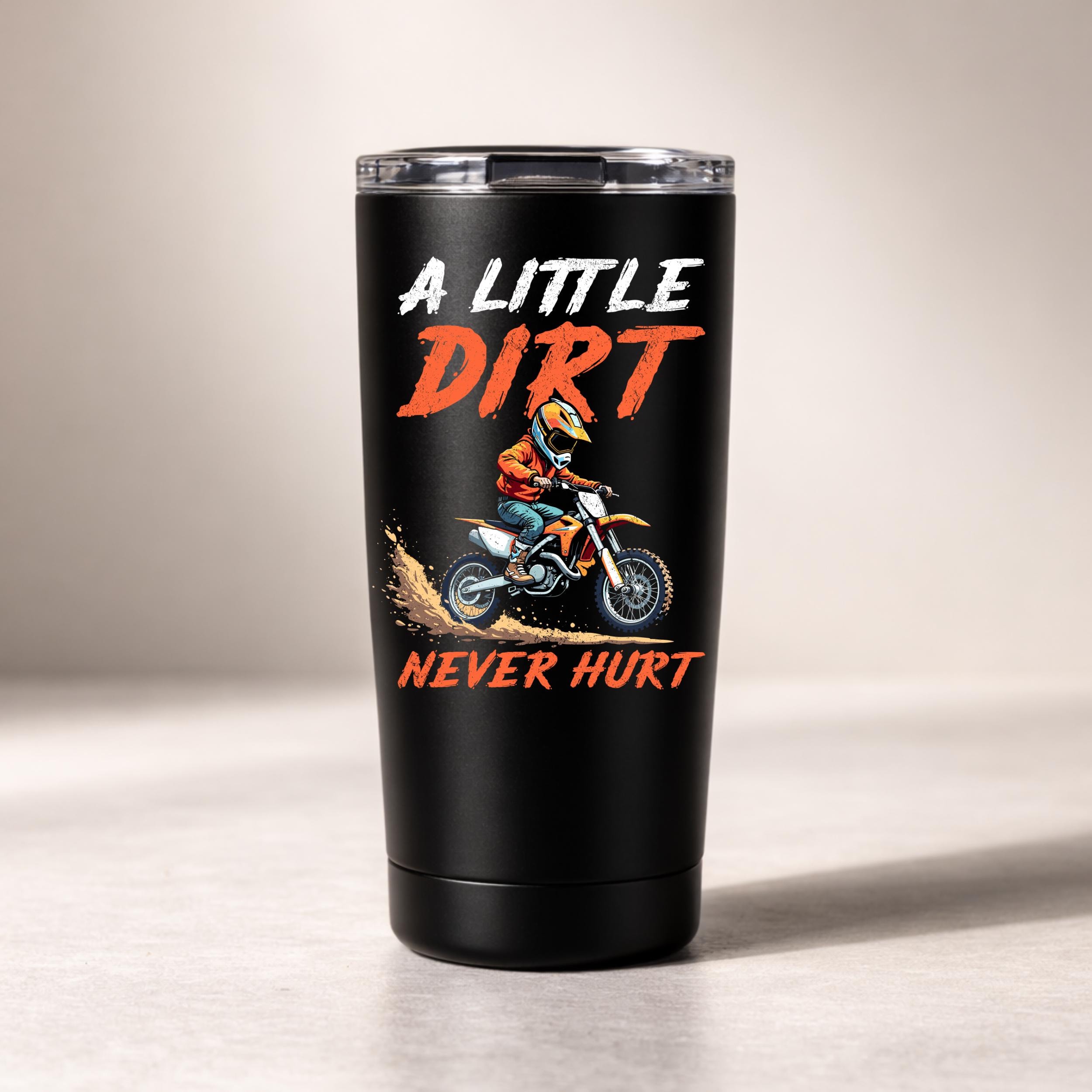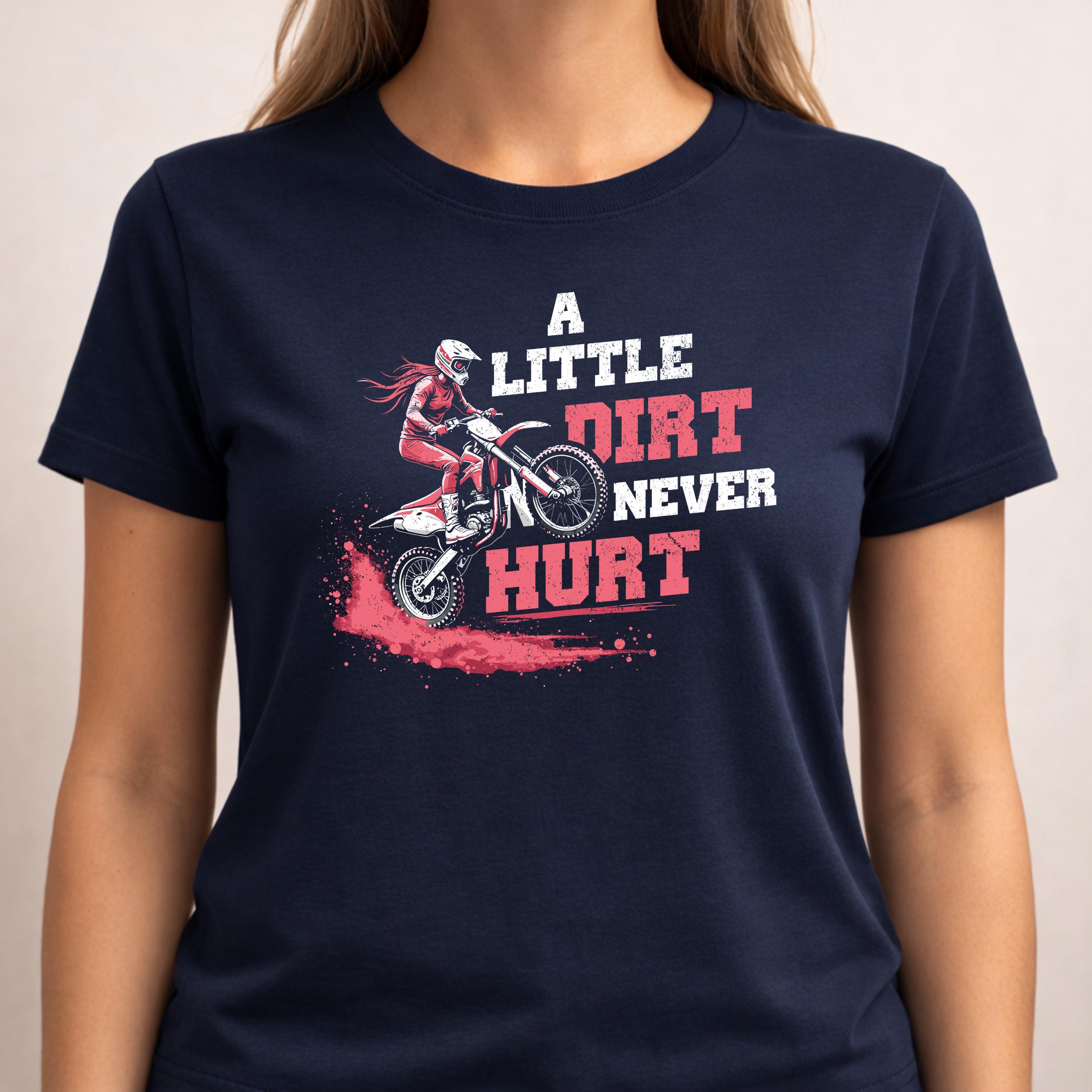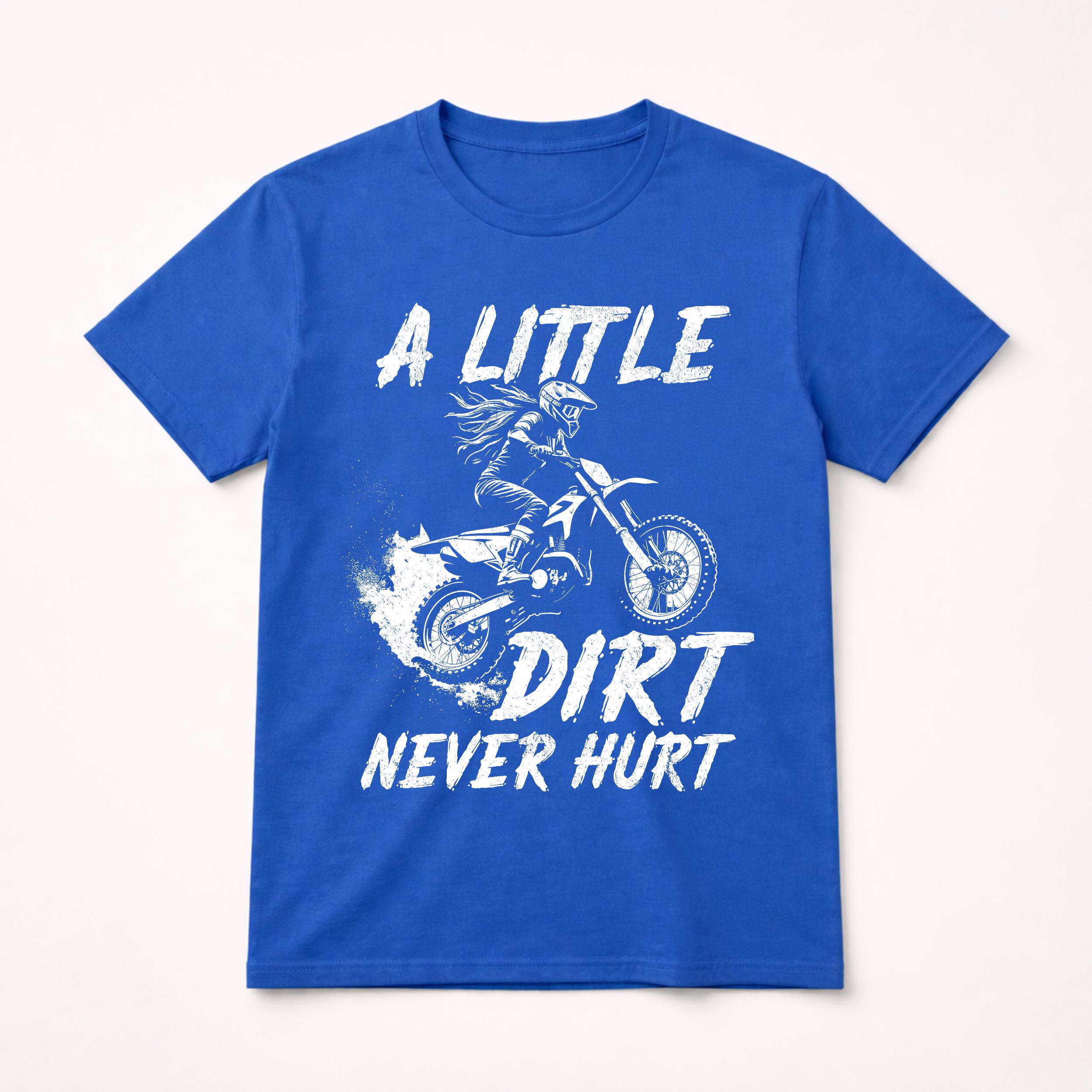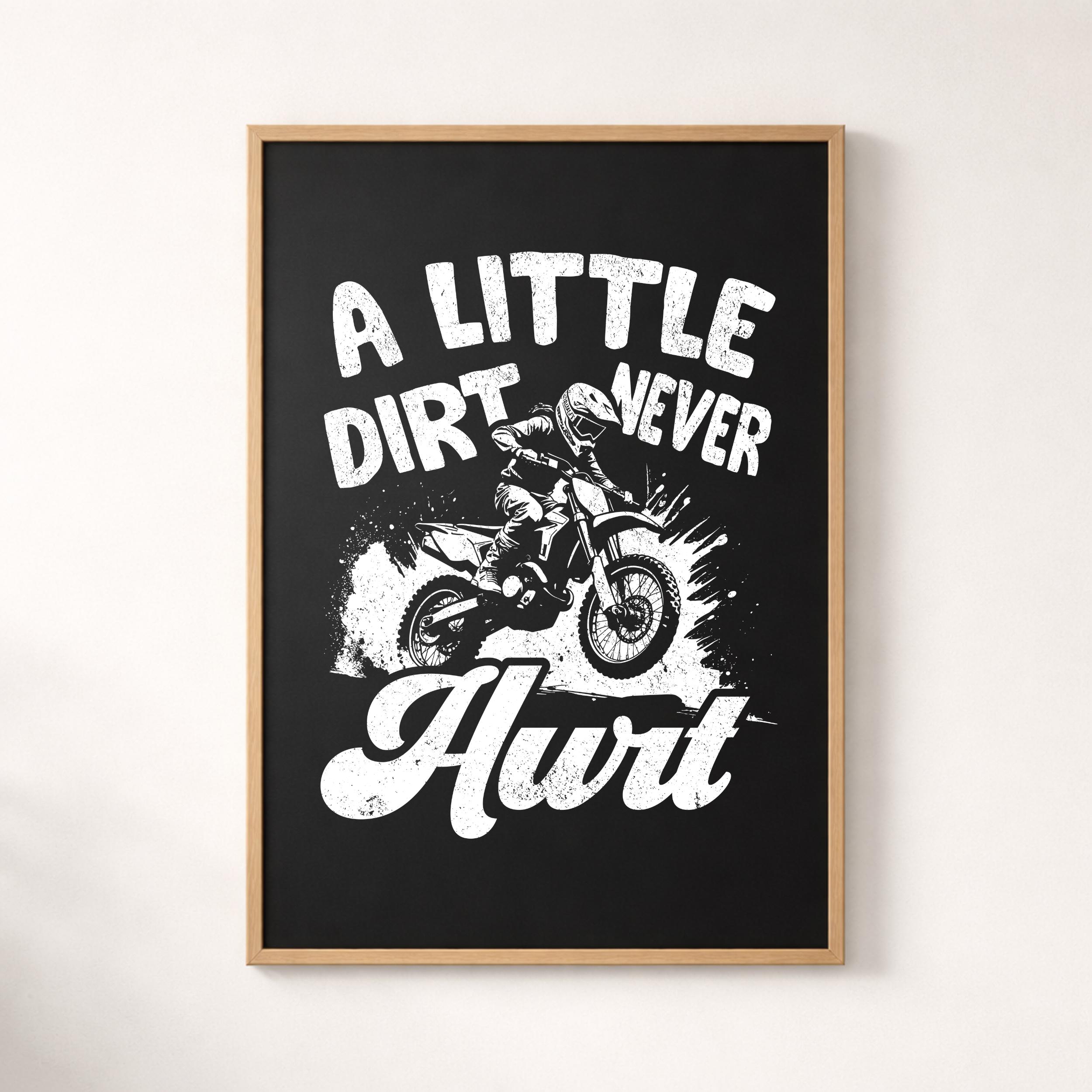 “A Little Dirt Never Hurt” motocross rider design PNG. Perfect for dirt bike lovers and racing fans. This PNG digital download works for sublimation, Cricut crafts, shirts, mugs, stickers, and printing projects.