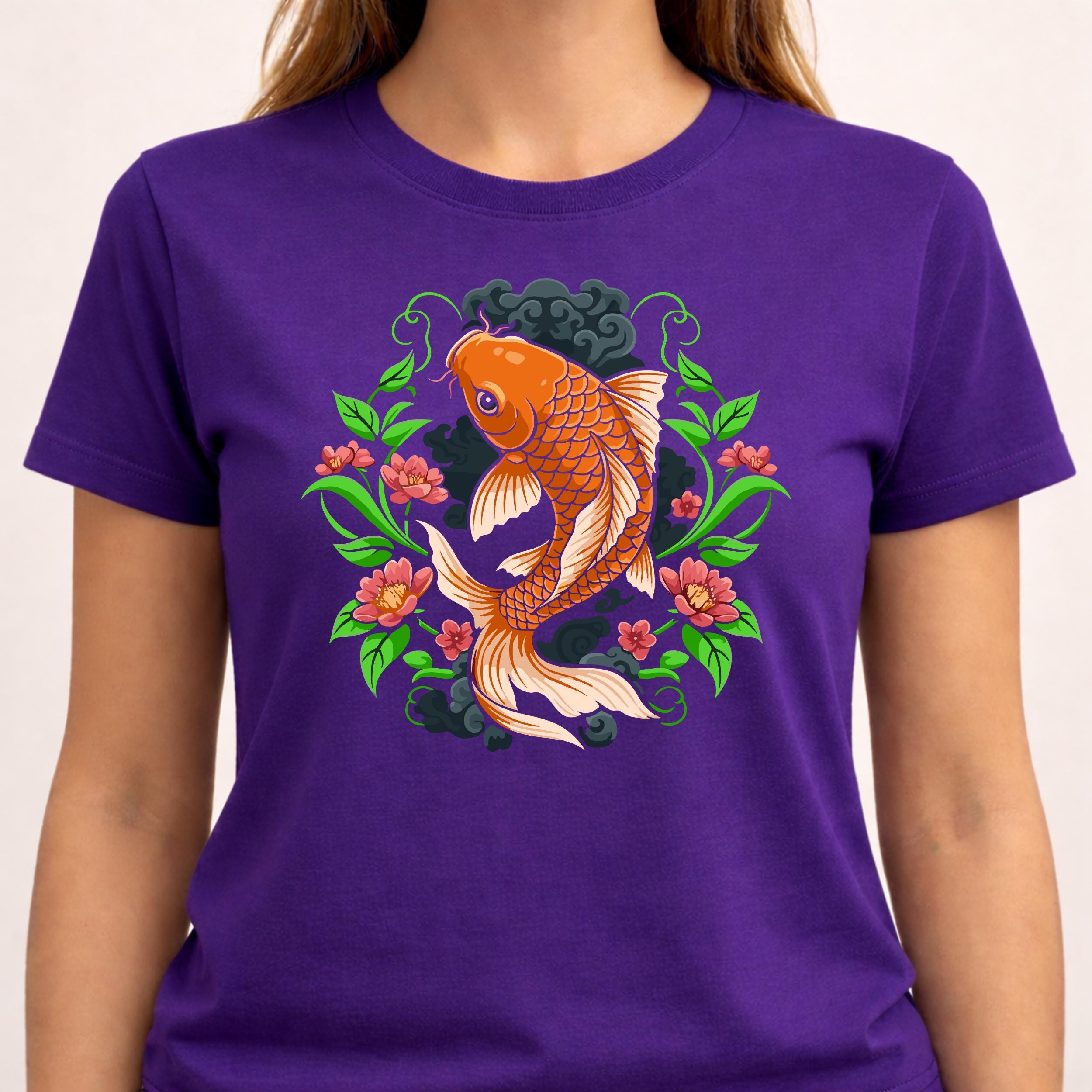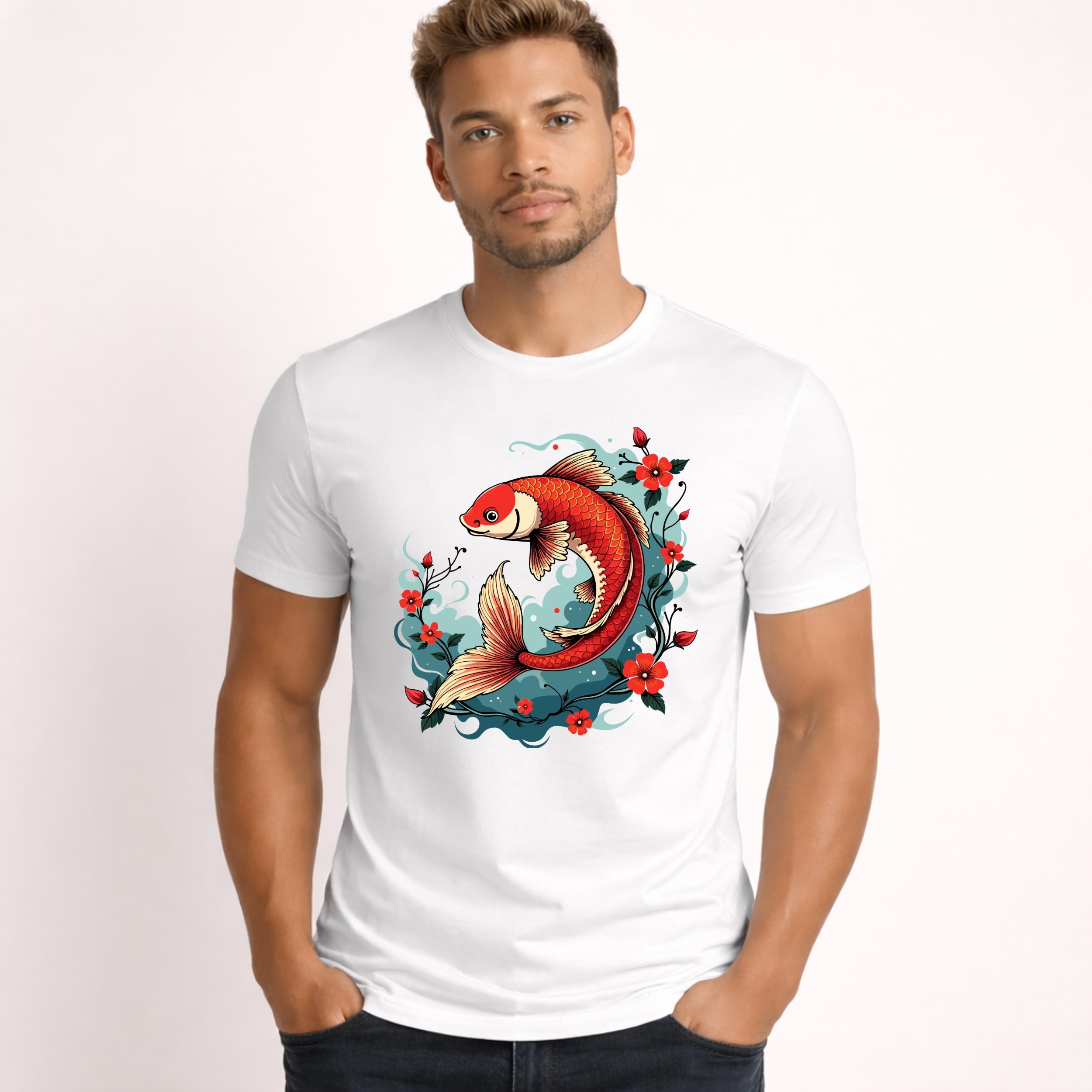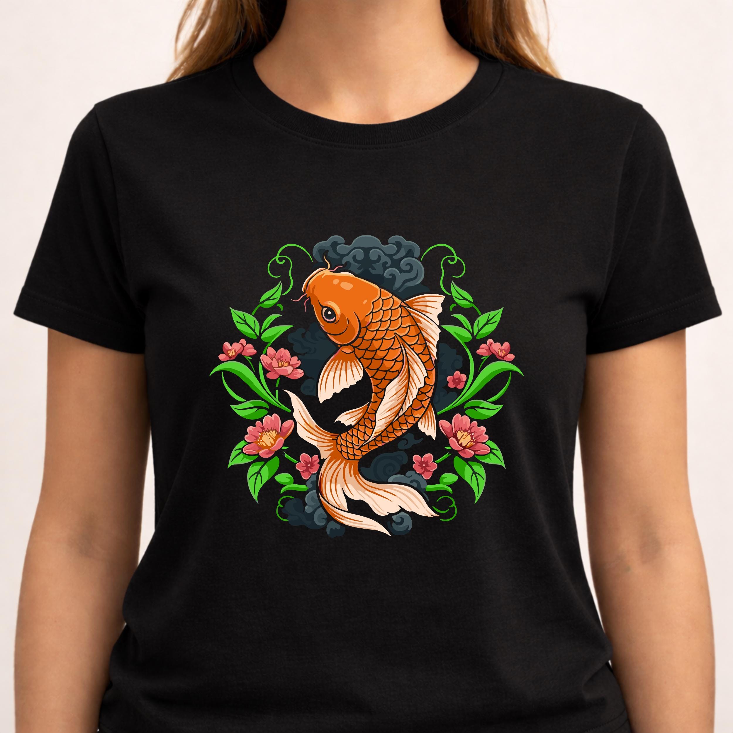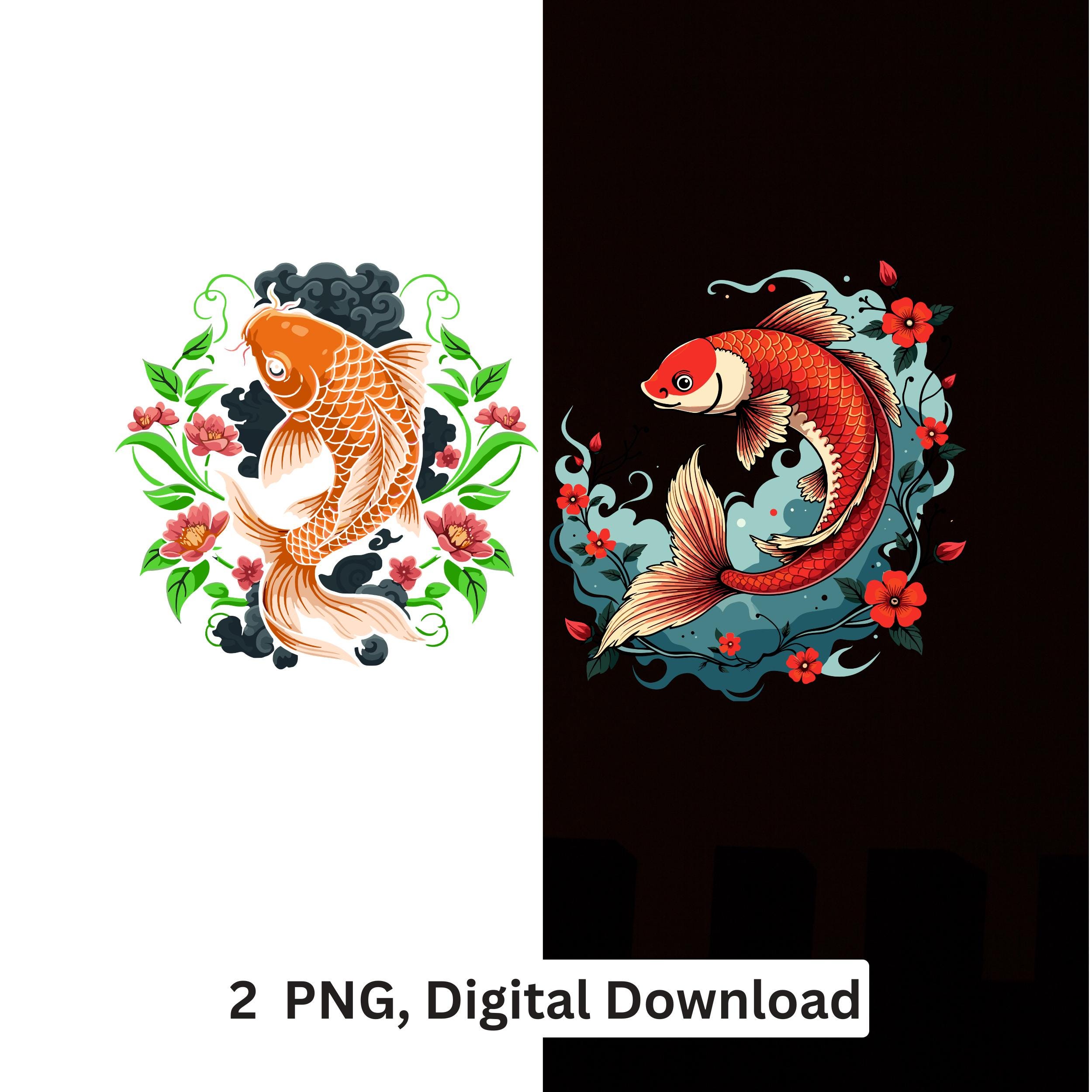 Elegant koi fish with floral elements PNG design inspired by Japanese art style. Perfect for koi lovers and aesthetic fans. This PNG digital download works for sublimation, Cricut crafts, shirts, mugs, stickers, and printing projects.