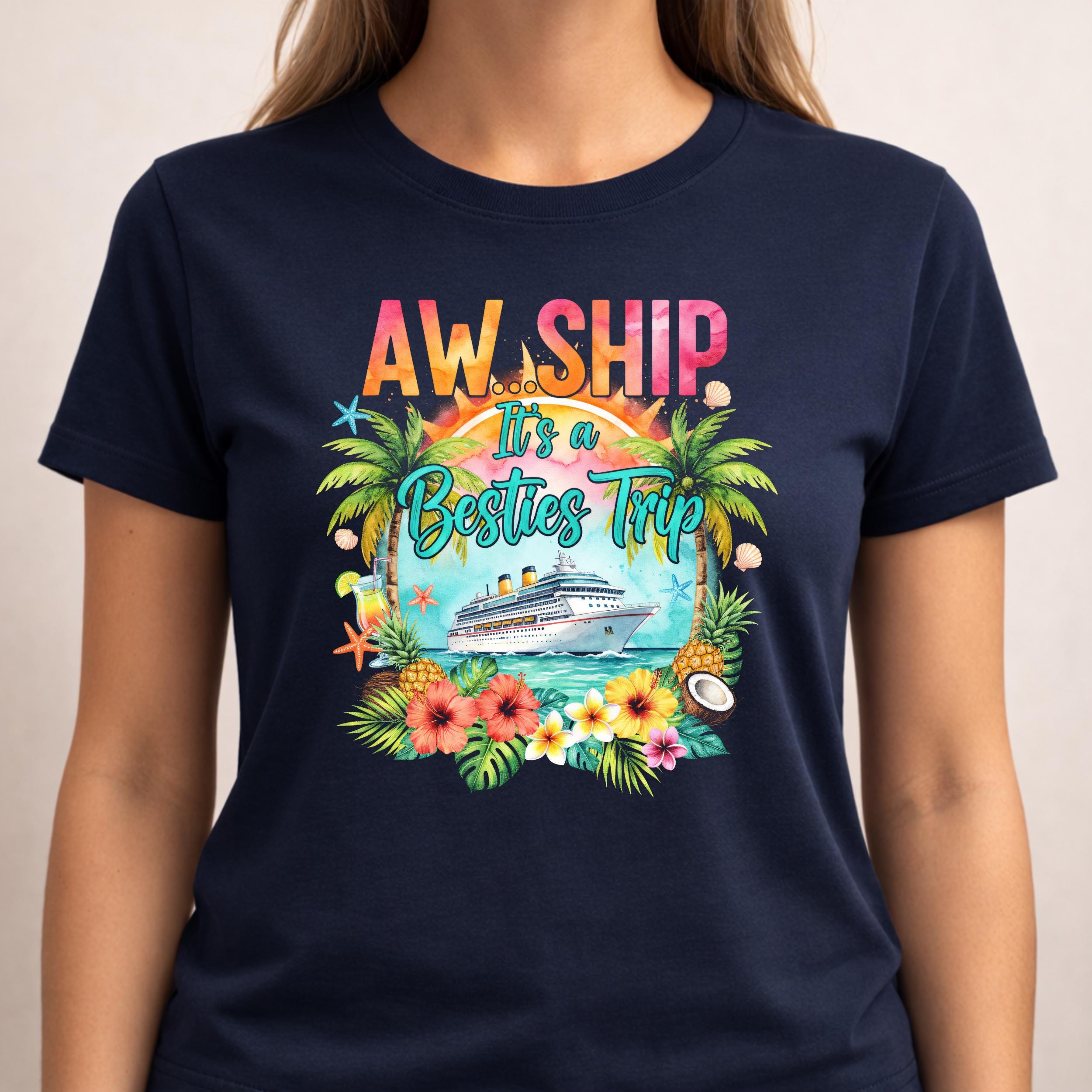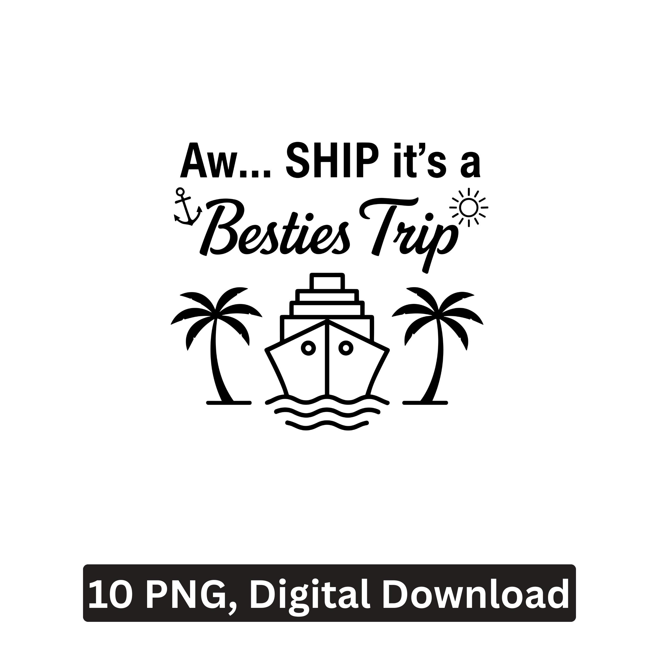 Cruise Besties PNG digital download featuring fun girls trip vacation design perfect for friends. Ideal for sublimation, Cricut crafts, shirts, mugs, stickers, and printing projects for cruise parties and travel memories.
